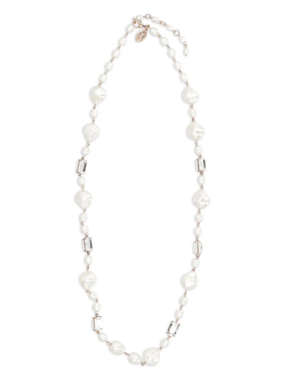 off-white baroque pearls crystal embellishments rectangular crystals lobster clasp fastening