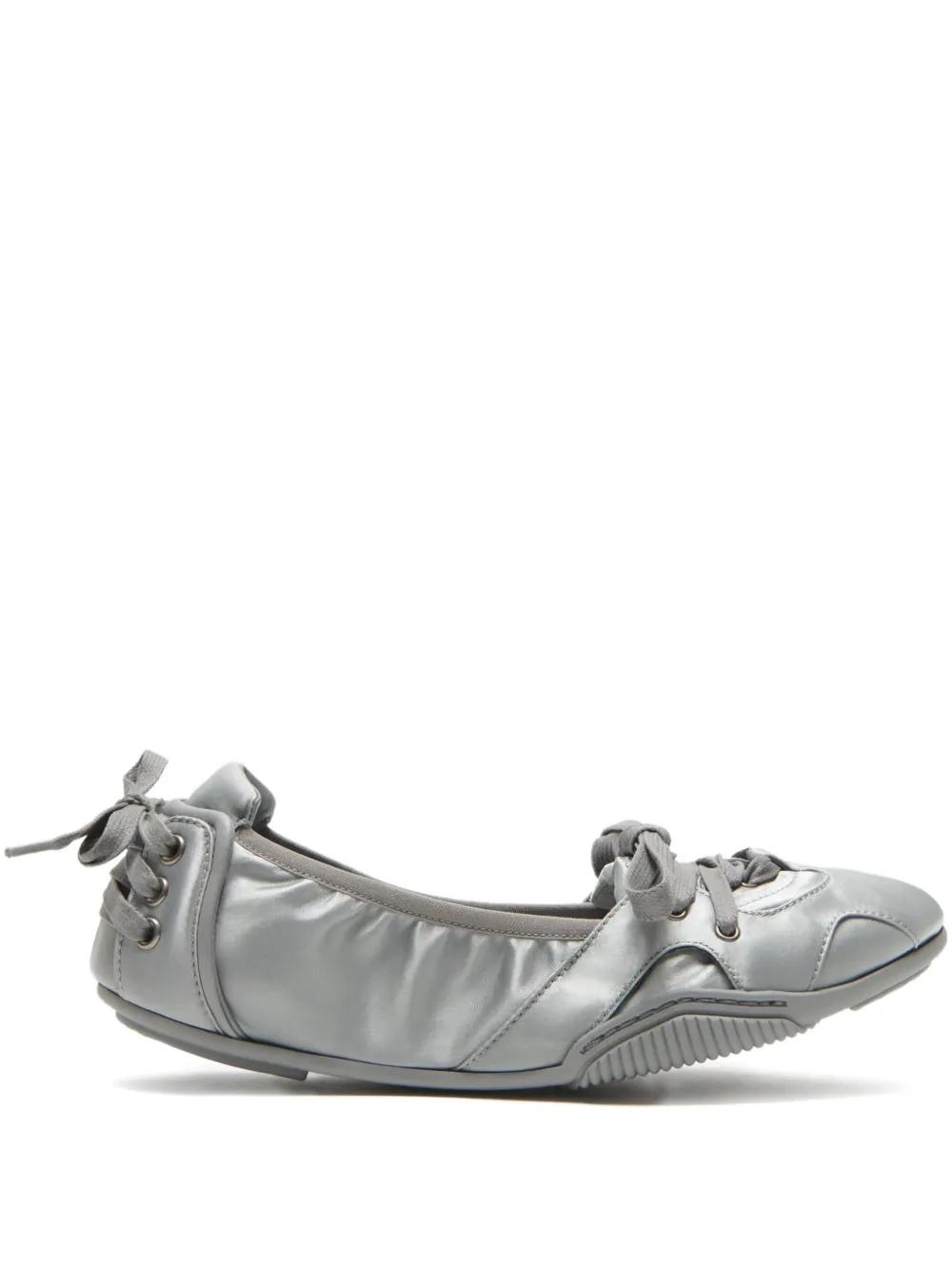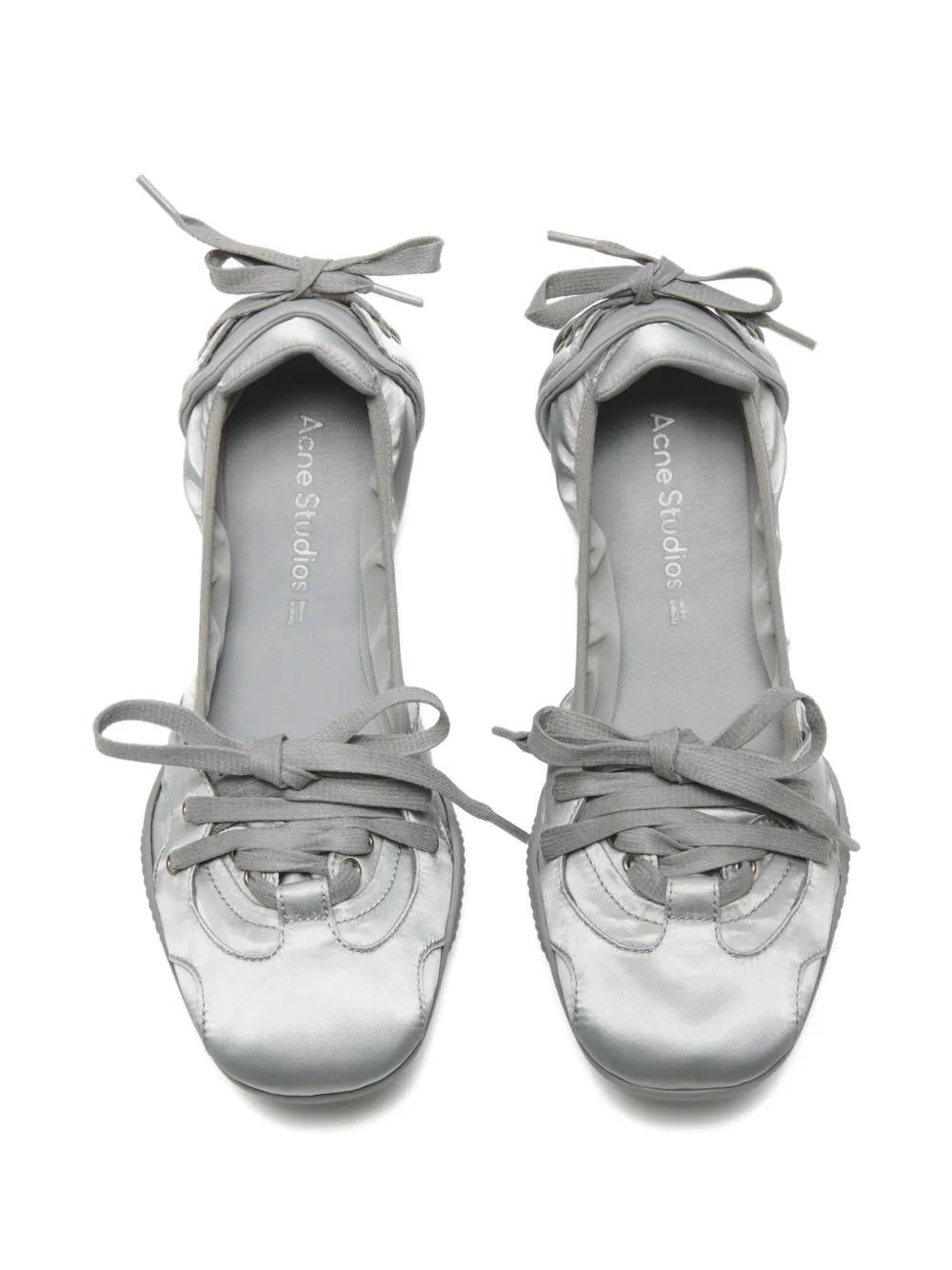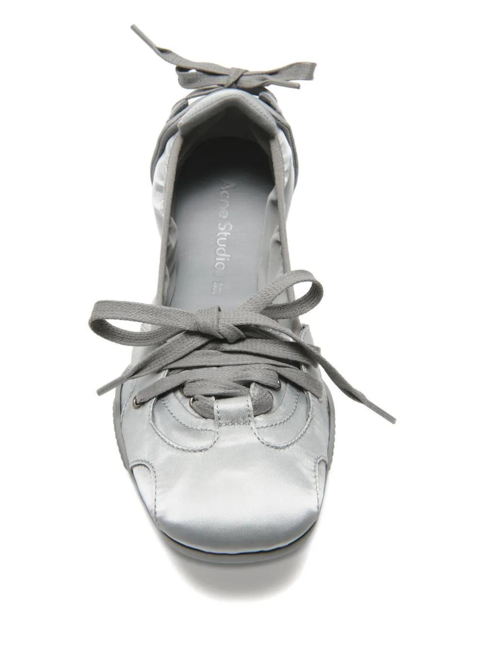 light grey lace-up fastening bow detailing ribbed sole round toe flat sole