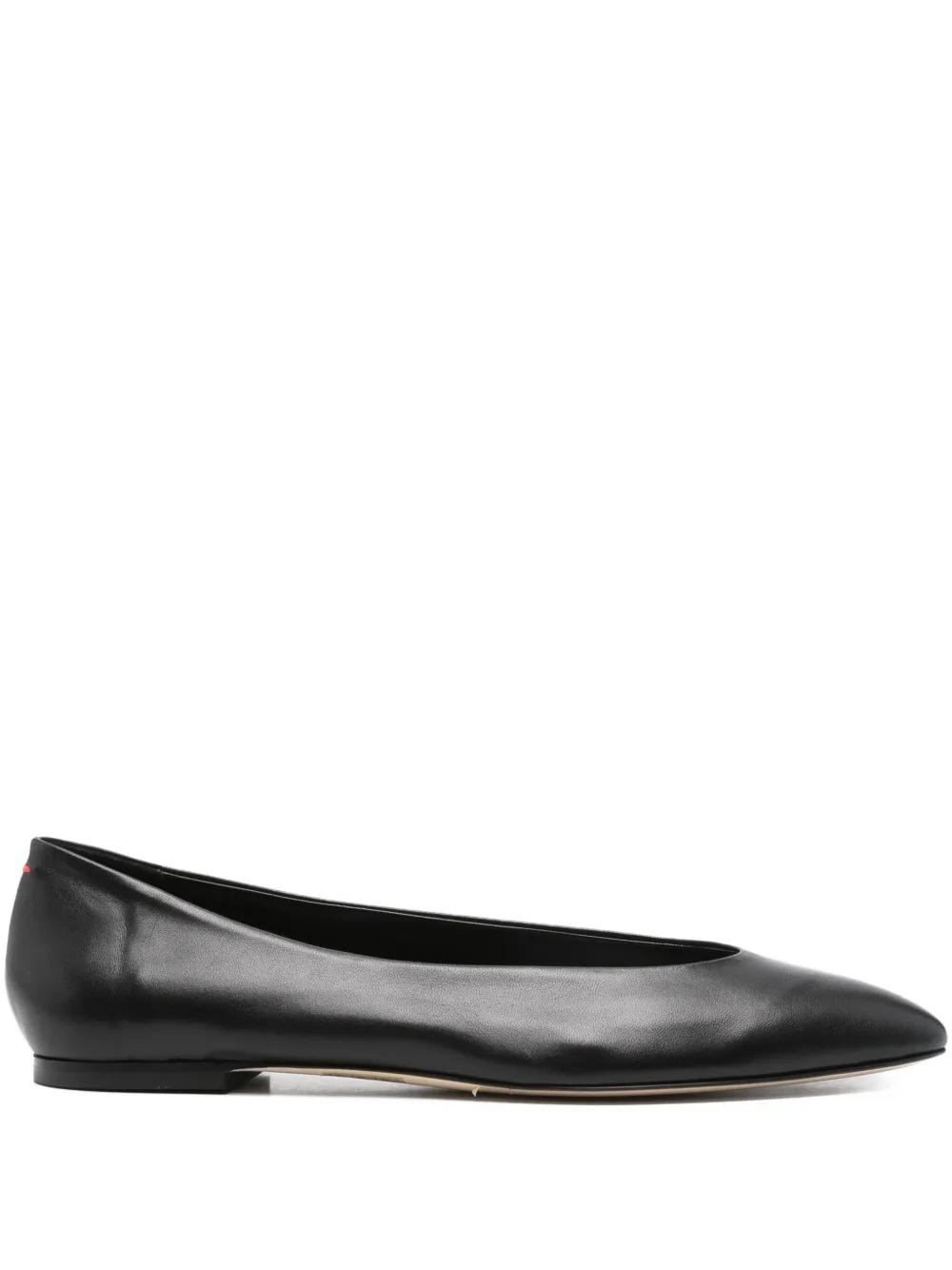light brown pyramid studs pointed toe flat sole slip-on style tonal stitching