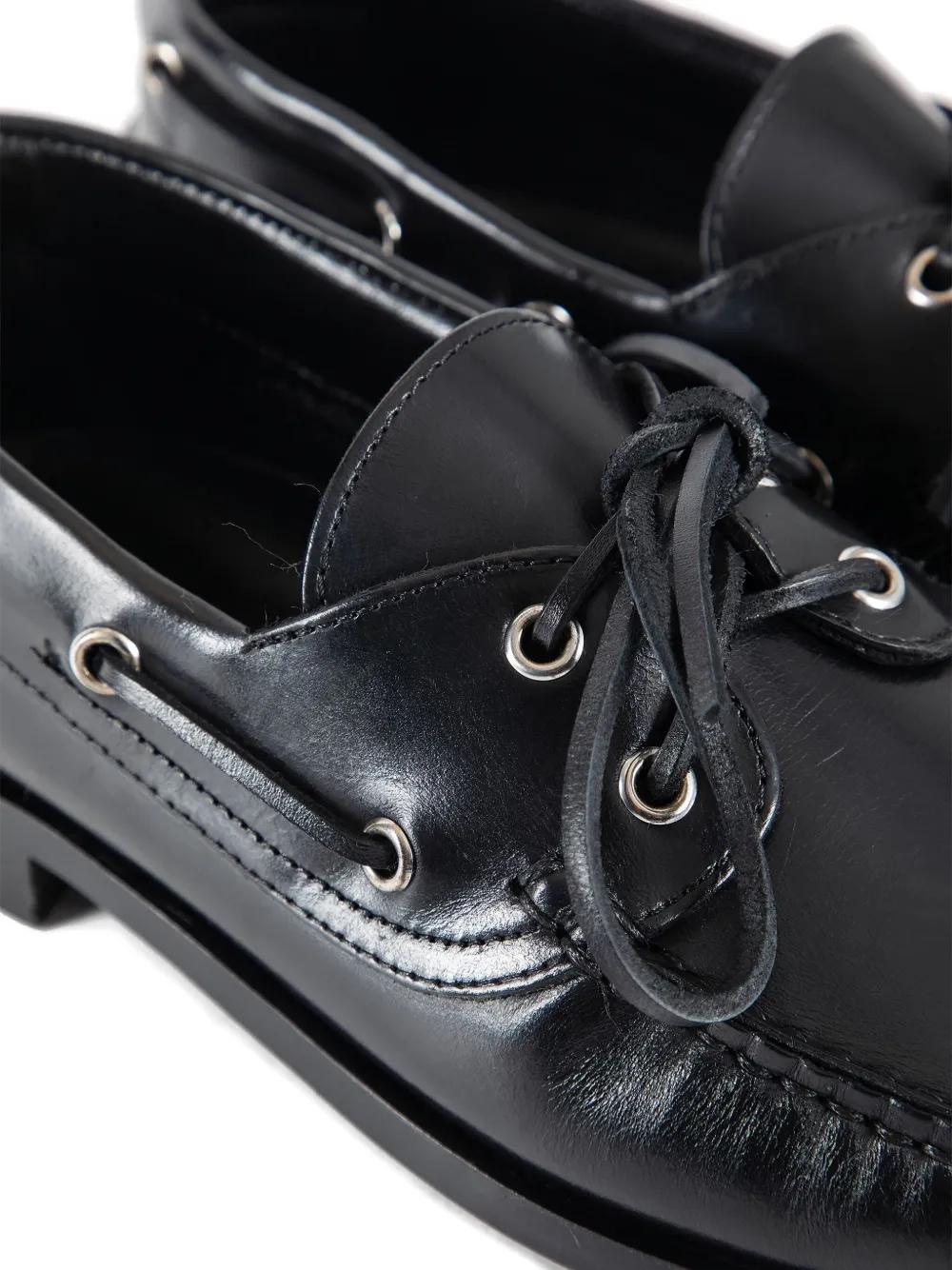 black leather eyelet detail lace-up fastening round toe tonal stitching