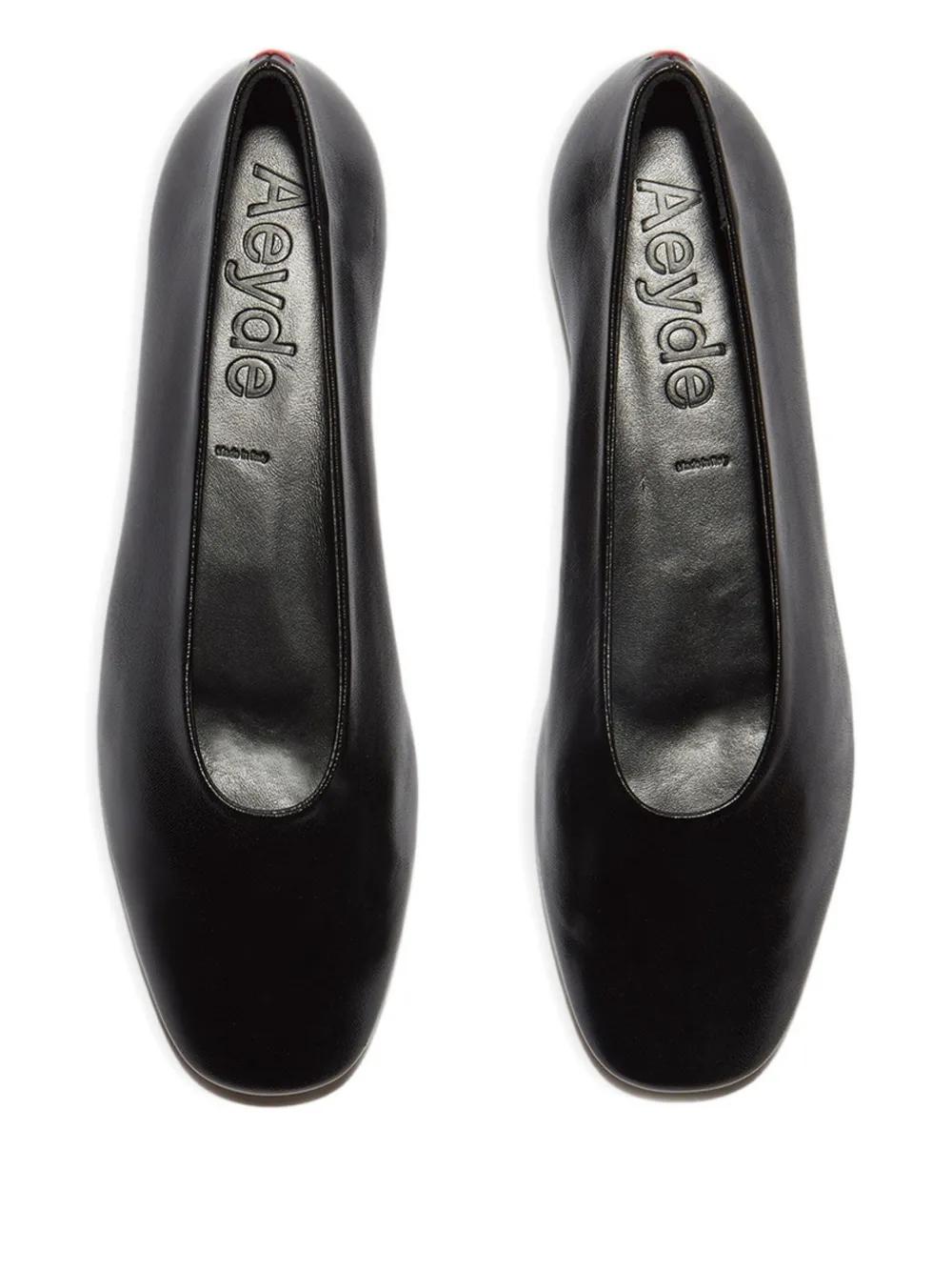 black velvet finish gold-tone logo plaque square toe front buckle fastening branded leather insole stacked heel rubber sole