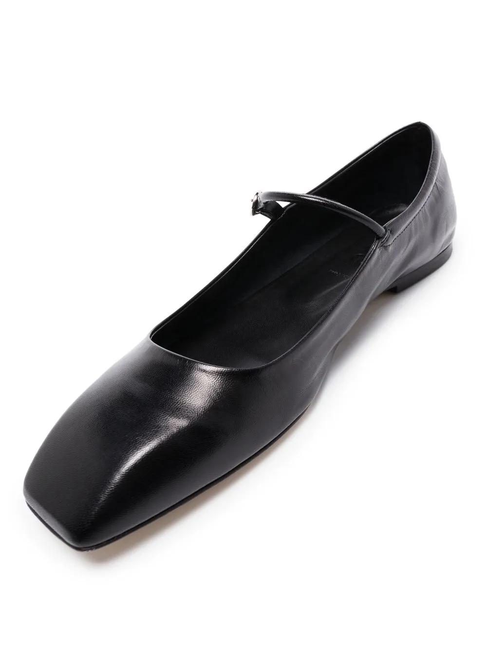 black leather front buckle fastening square toe slip-on style branded insole flat leather sole