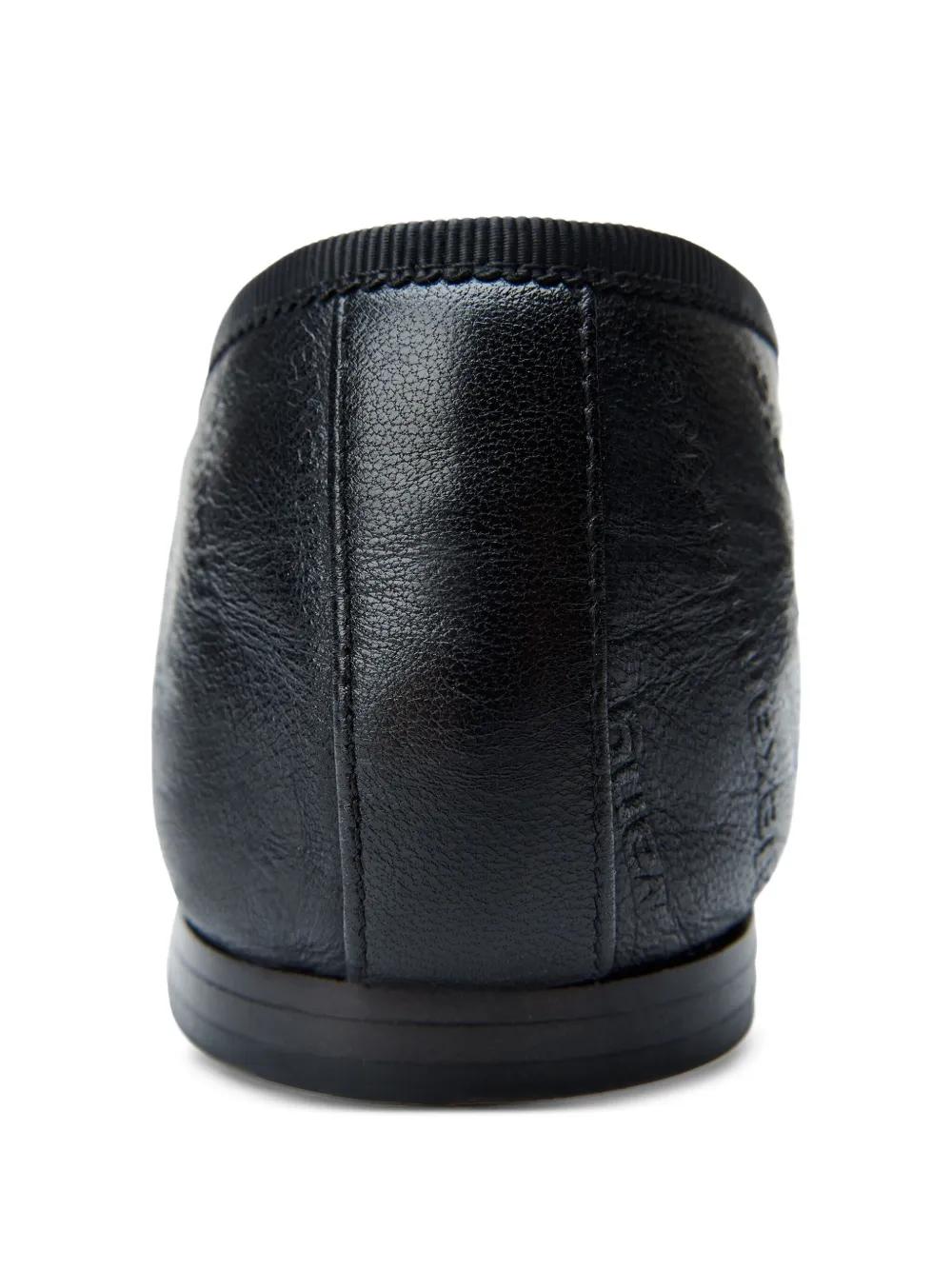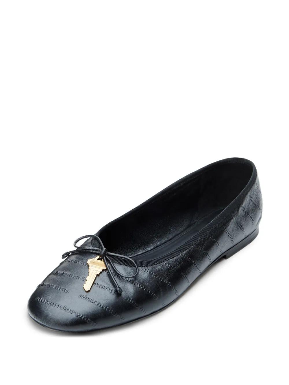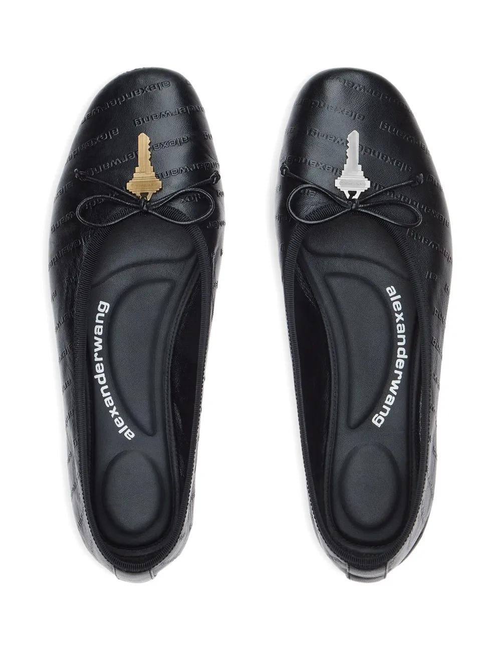 black quilted leather key embellishment bow detail round toe flat sole