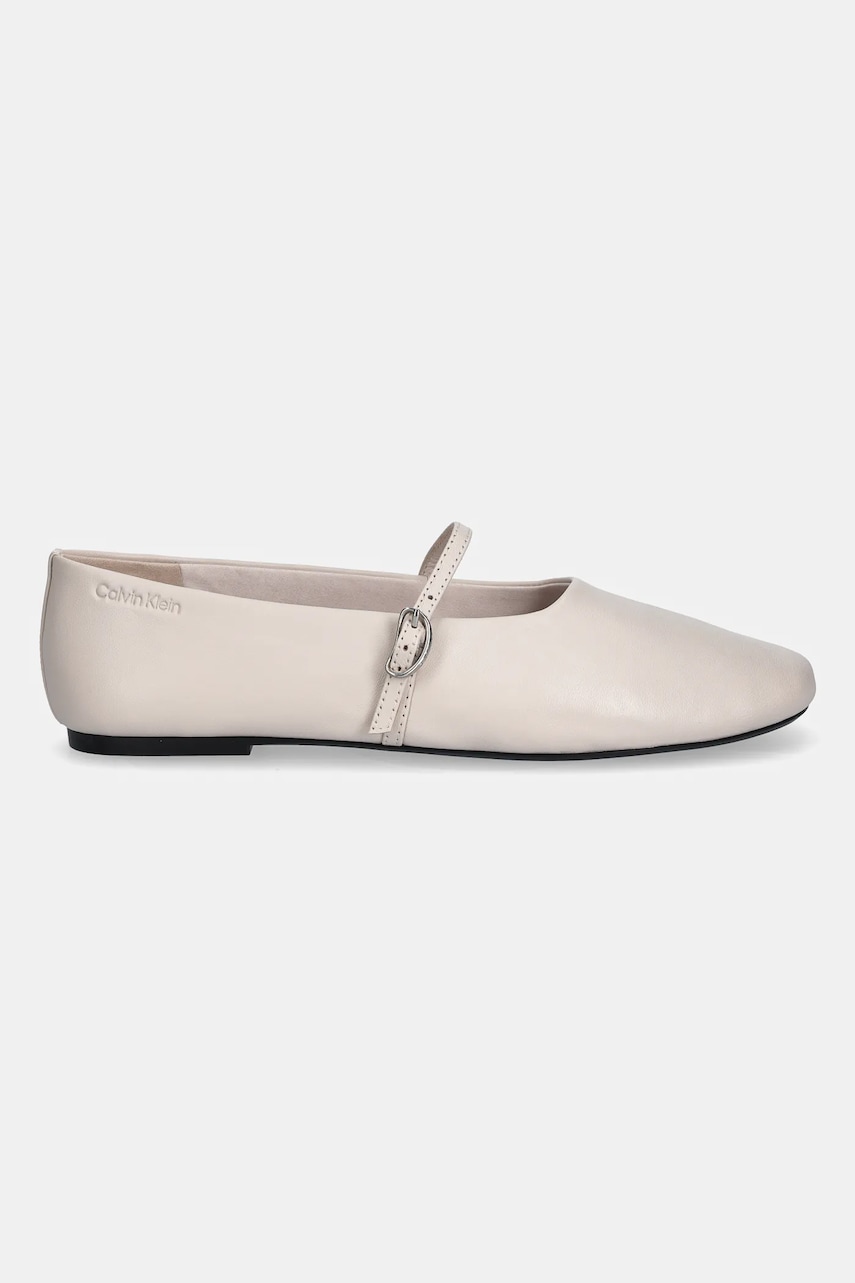Calvin Klein baleriny skórzane OBLIQUE BALLERINA MJ LTH HDW kolor beżowy HW0HW02847