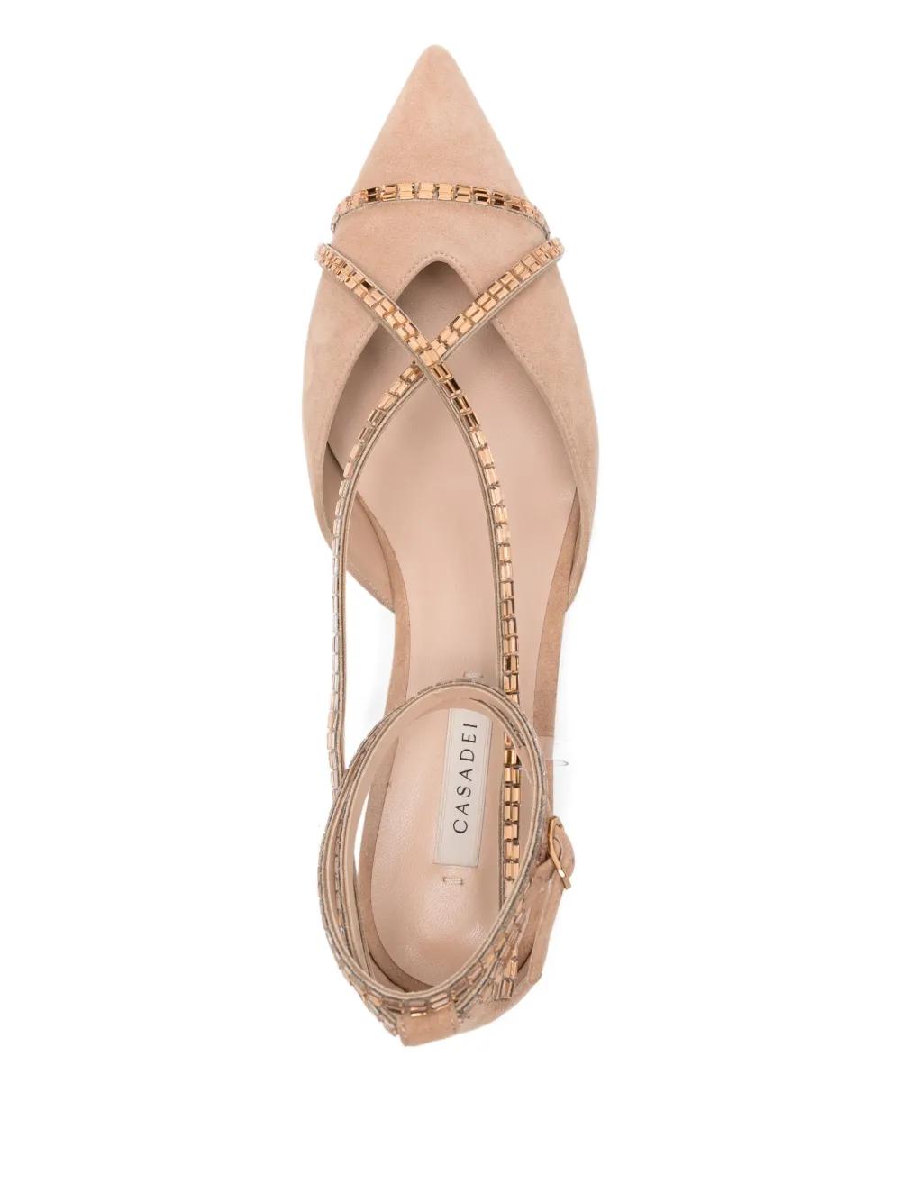 beige studded embellishment ankle strap pointed toe buckle fastening