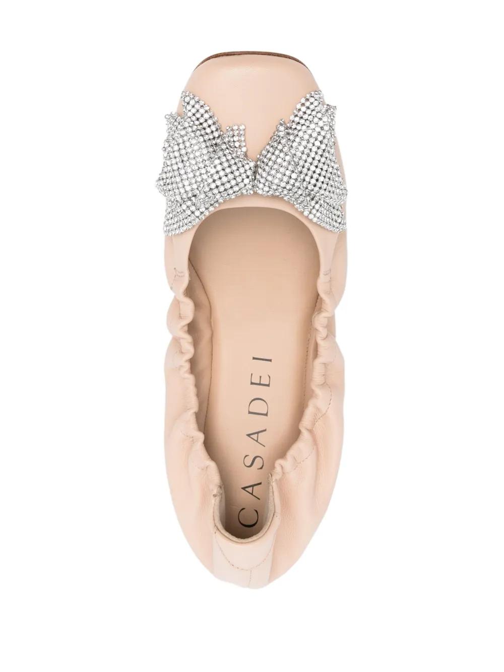 blush pink calf leather smooth grain square toe oversize bow detail rhinestone embellishment ruched detailing branded leather insole leather sole slip-on style This piece comes complete with a protective dust bag.