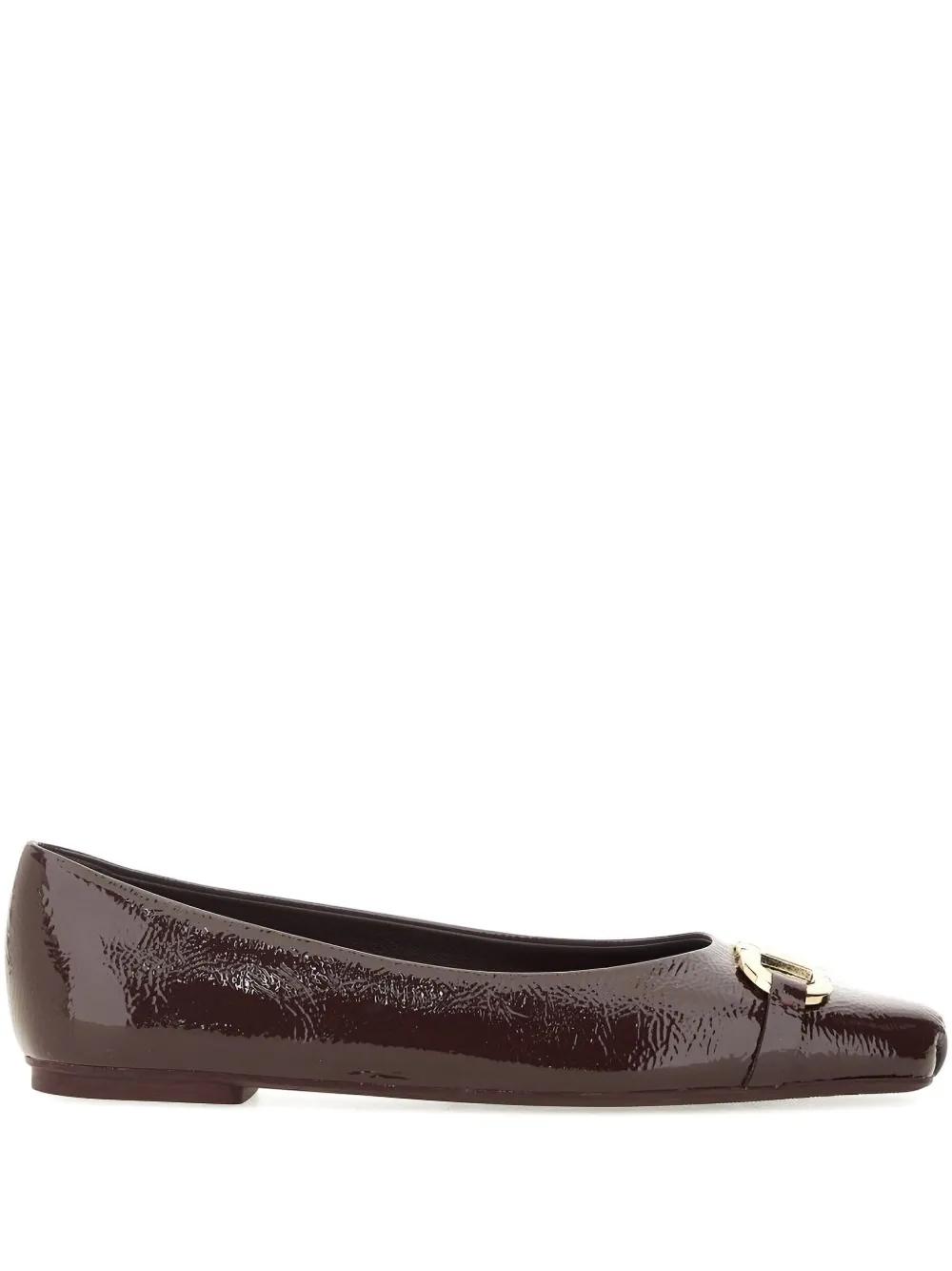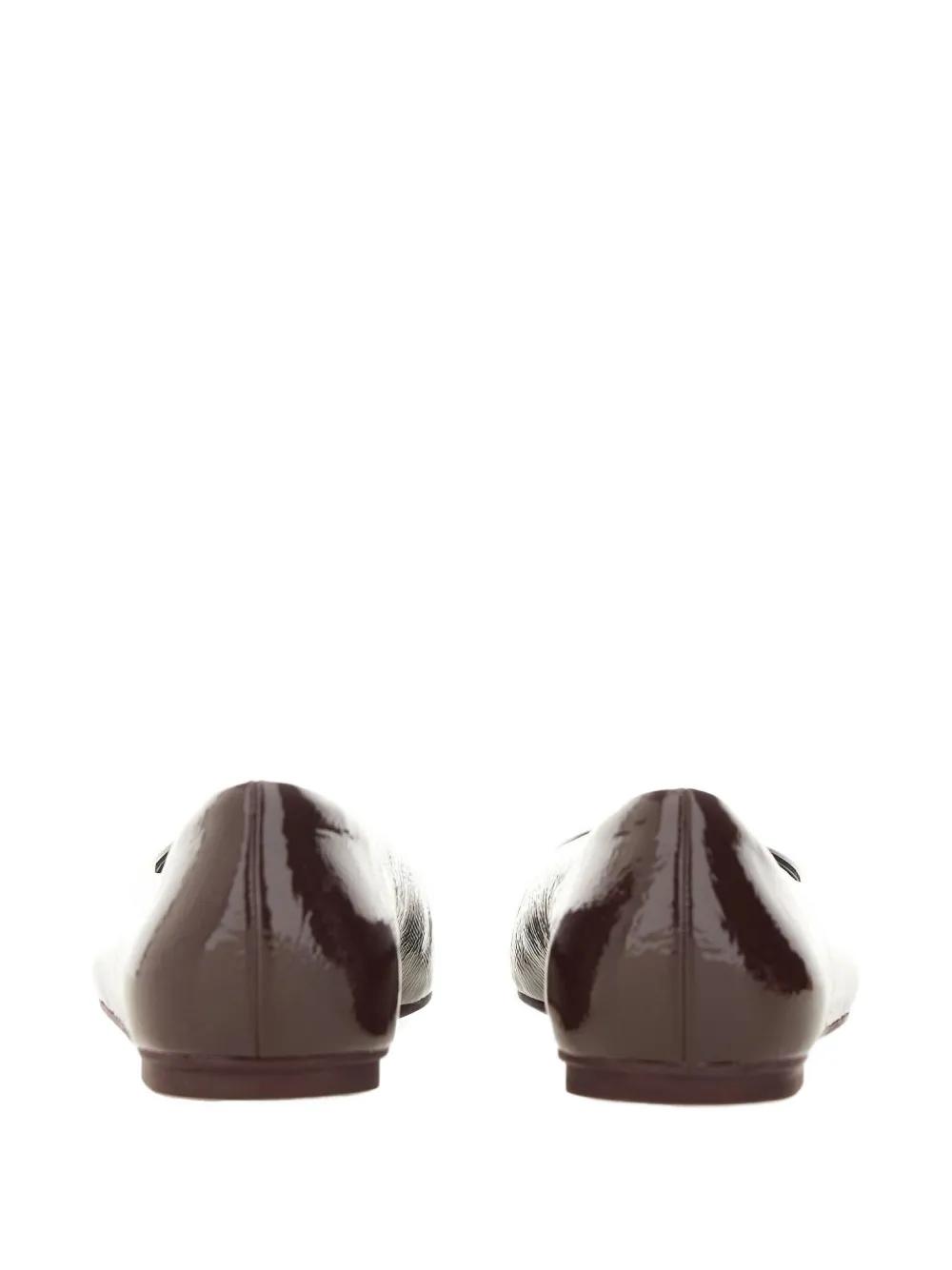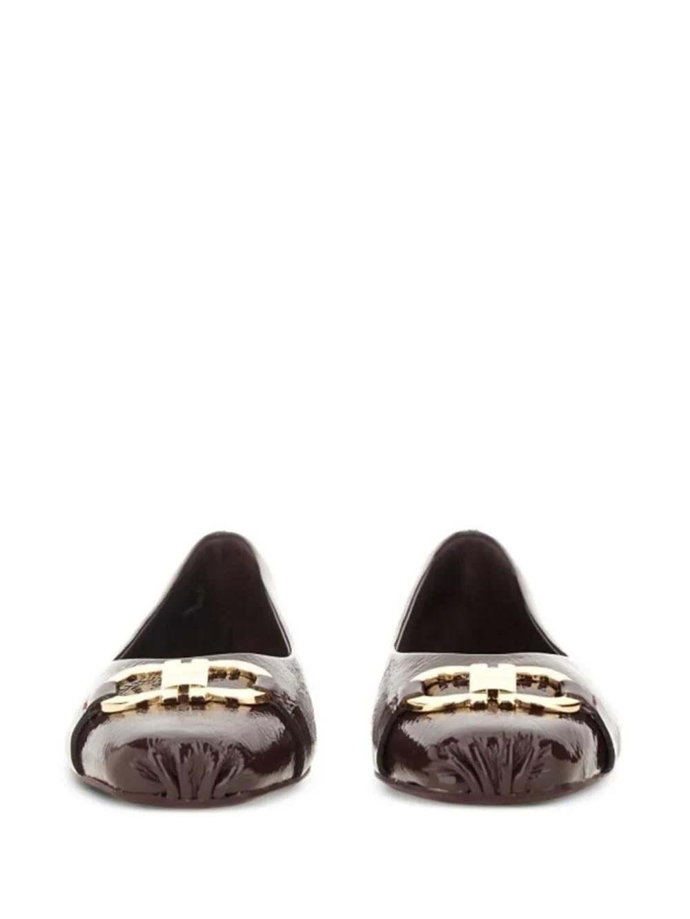 brown calf leather gold-tone hardware buckle detail round toe flat sole