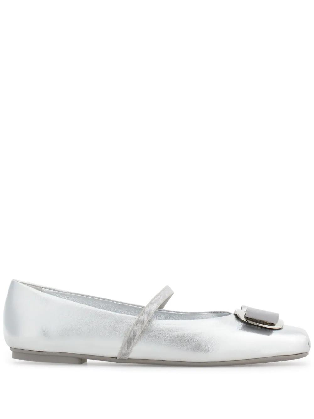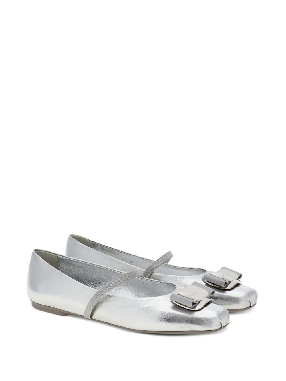 silver-tone lambskin signature Vara bow detail square toe flat leather sole branded insole