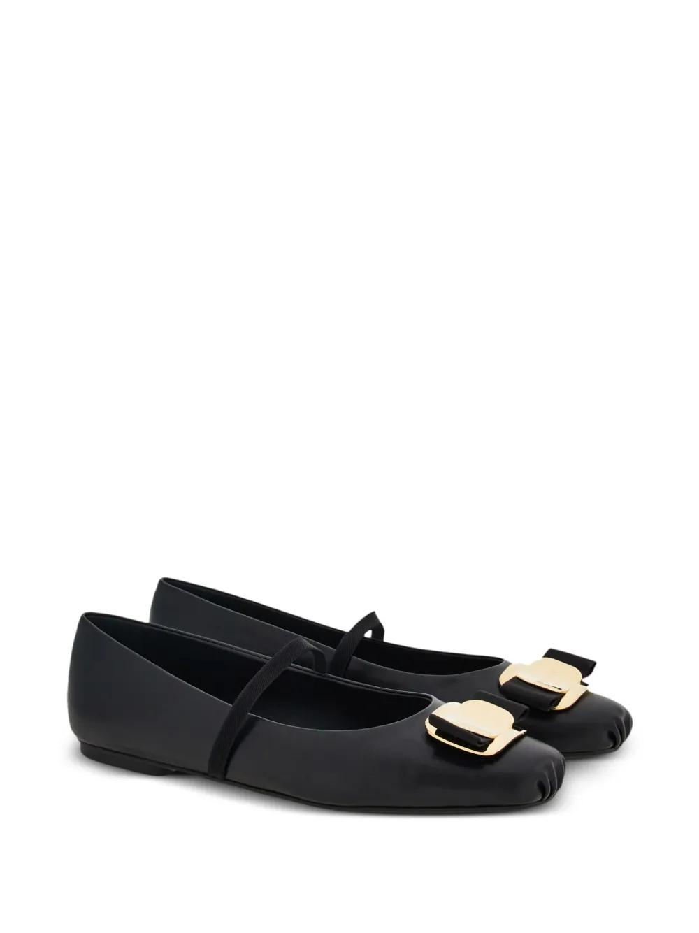 black lambskin signature Vara bow detail gold-tone hardware round toe slip-on style branded leather insole flat sole