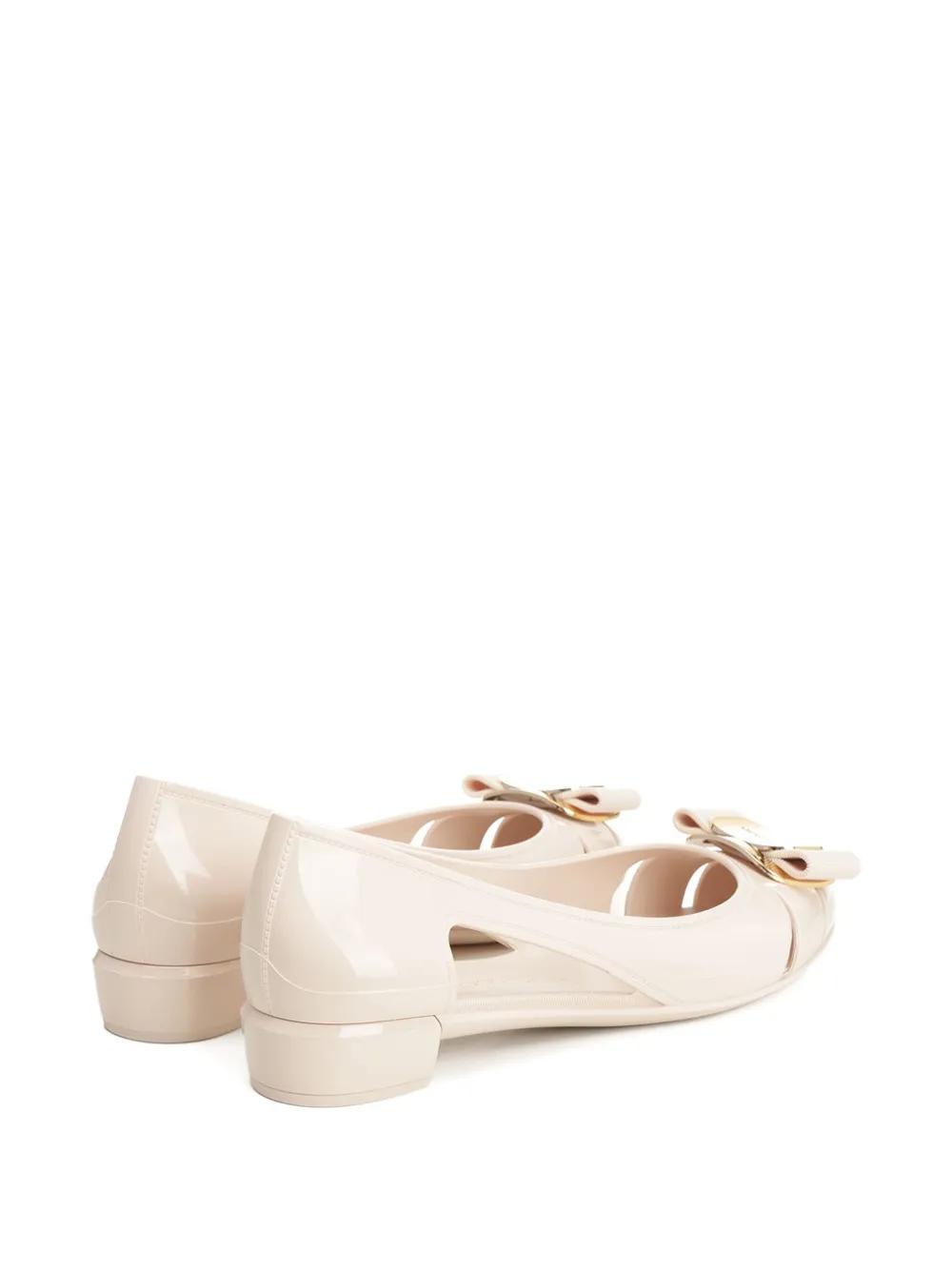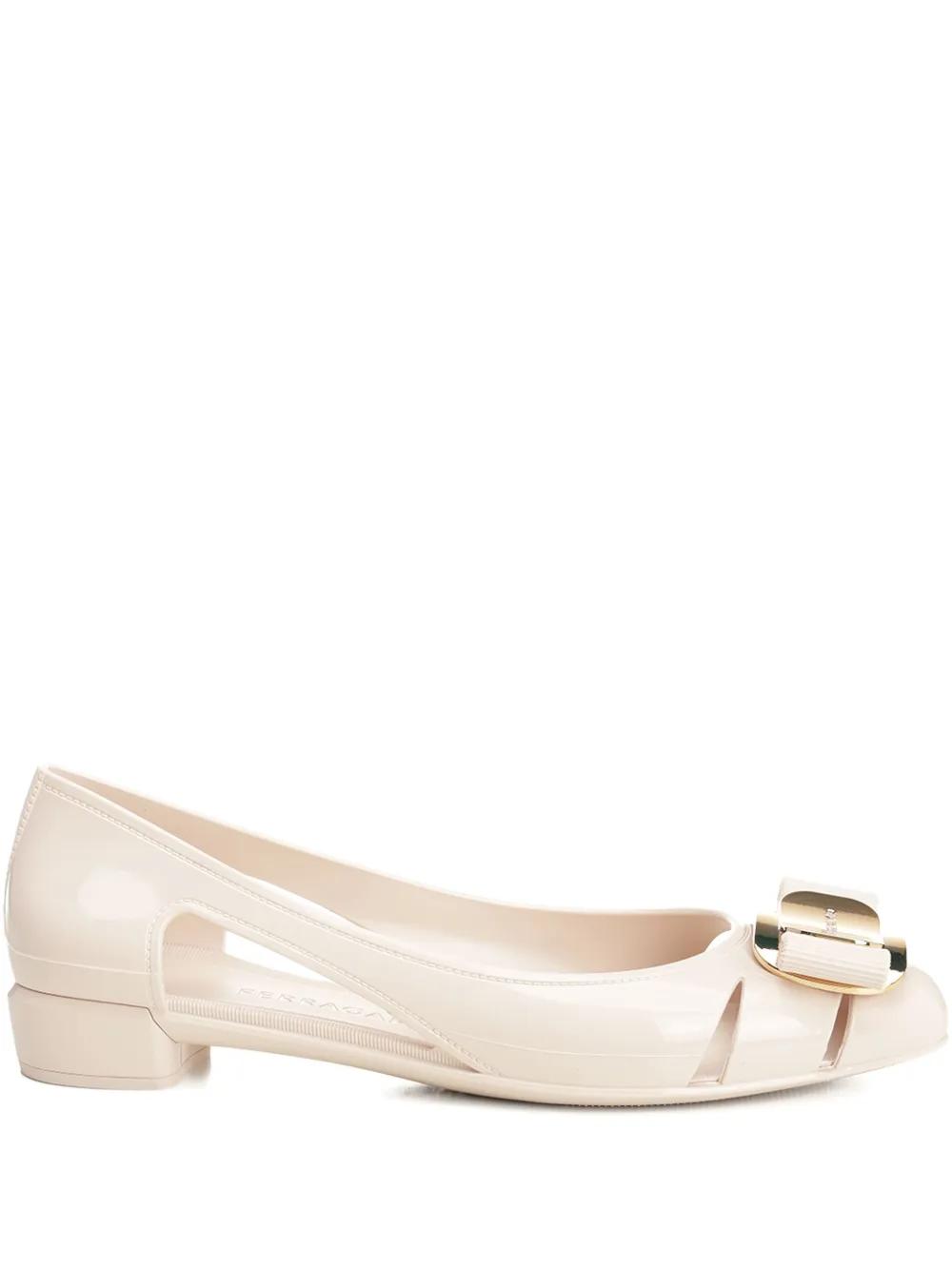 white silver-tone bow embellishment cut-out detail low block heel almond toe slip-on style