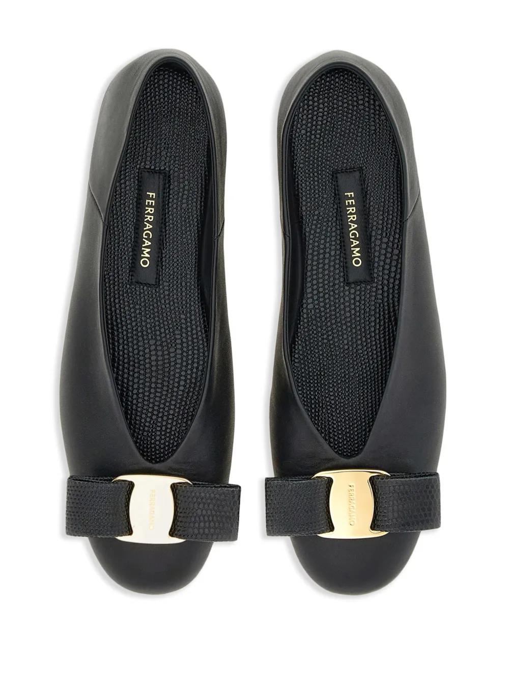 black leather signature Vara bow detail folding heel slip-on style branded leather insole round toe leather sole gold-tone hardware