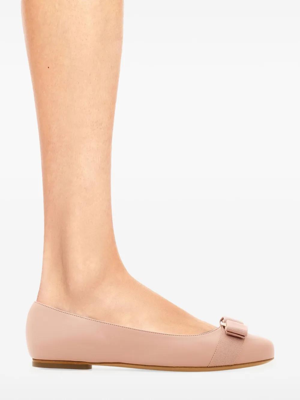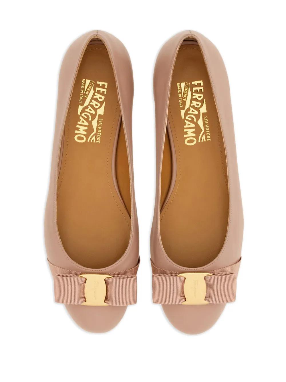 pink leather signature Vara bow detail slip-on style branded leather insole round toe flat leather sole gold-tone hardware