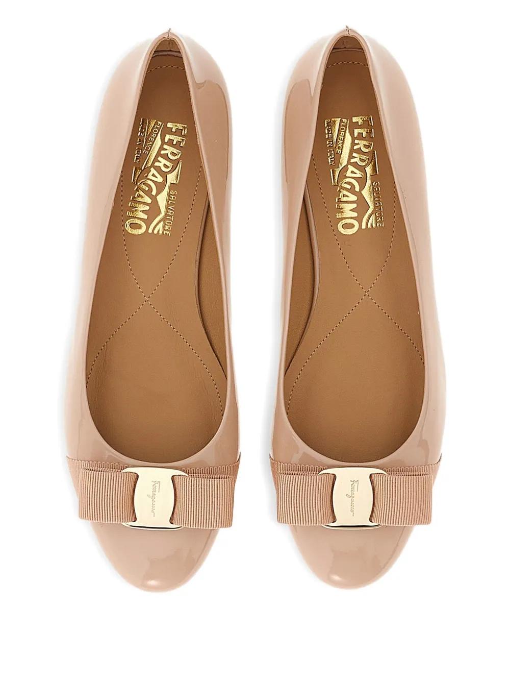 Ferragamo Varina patent bow-detail ballet flats - Neutrals