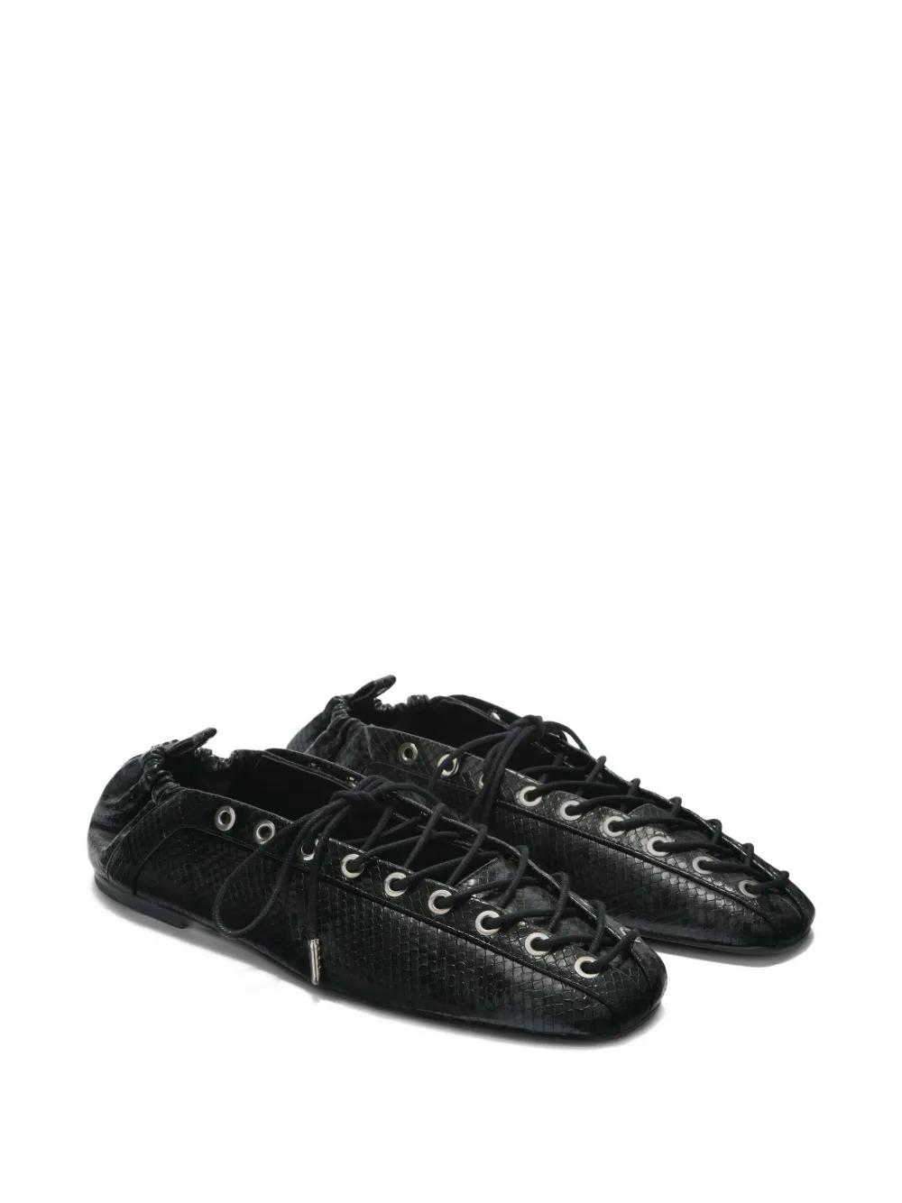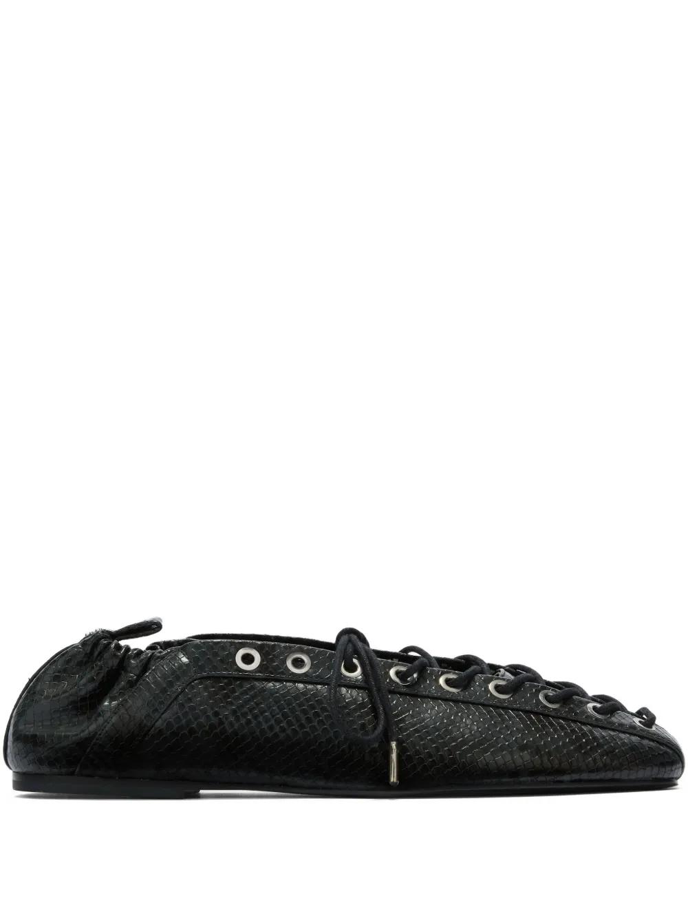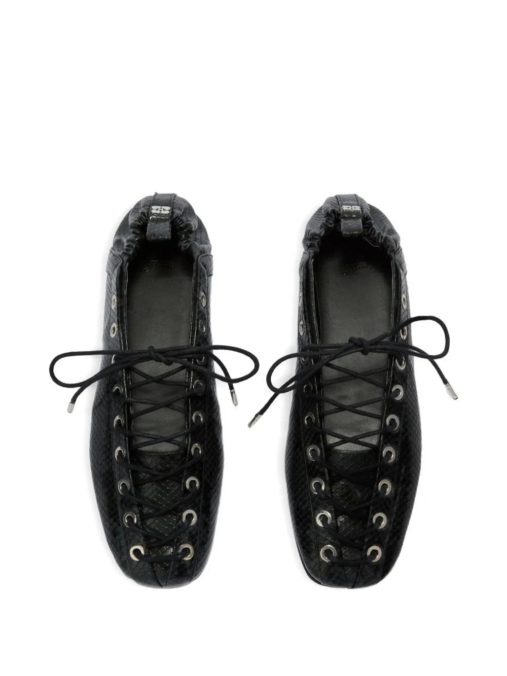 black tie-fastening ankle strap pattern-lace detailing almond toe flat sole