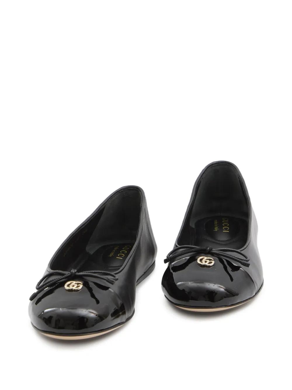 black patent leather toe leather bow accent GG detail quilted leather insole