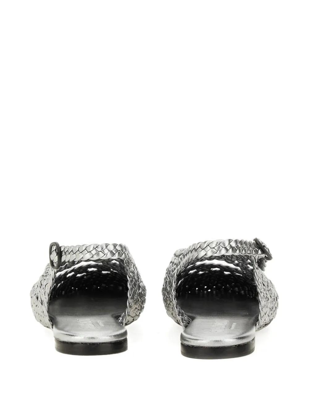 silver-tone leather woven design strap buckle fastening flat sole round toe