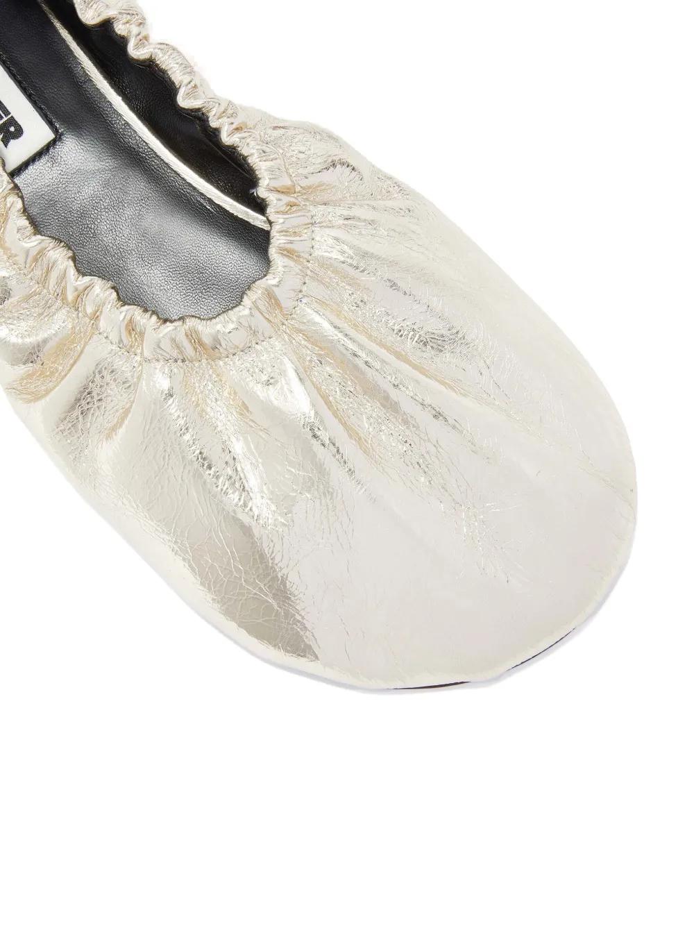 Jil Sander gathered-detail leather ballerina shoes - Yellow