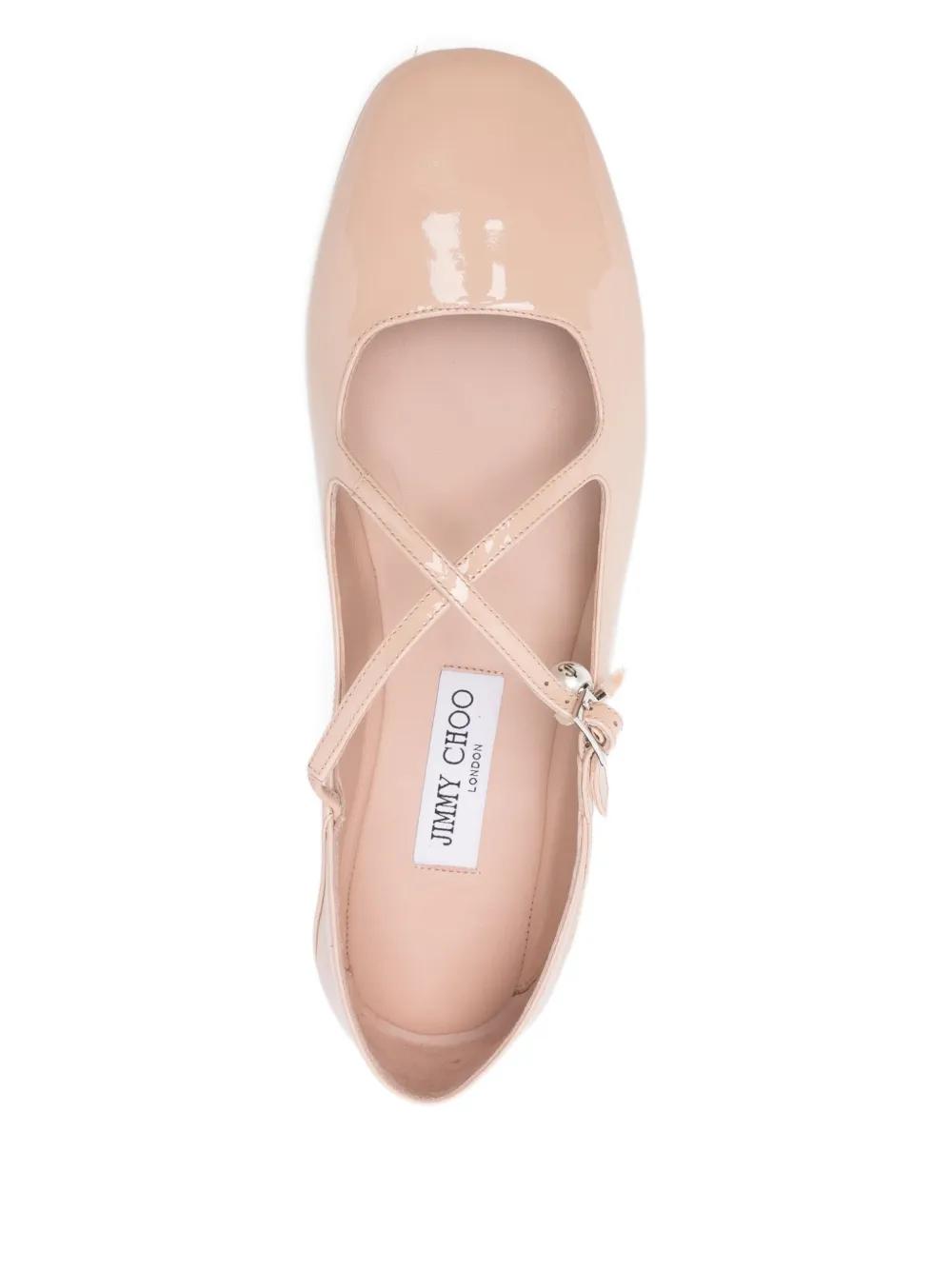 blush pink calf leather patent finish pearl detailing single toe strap round toe flat leather sole