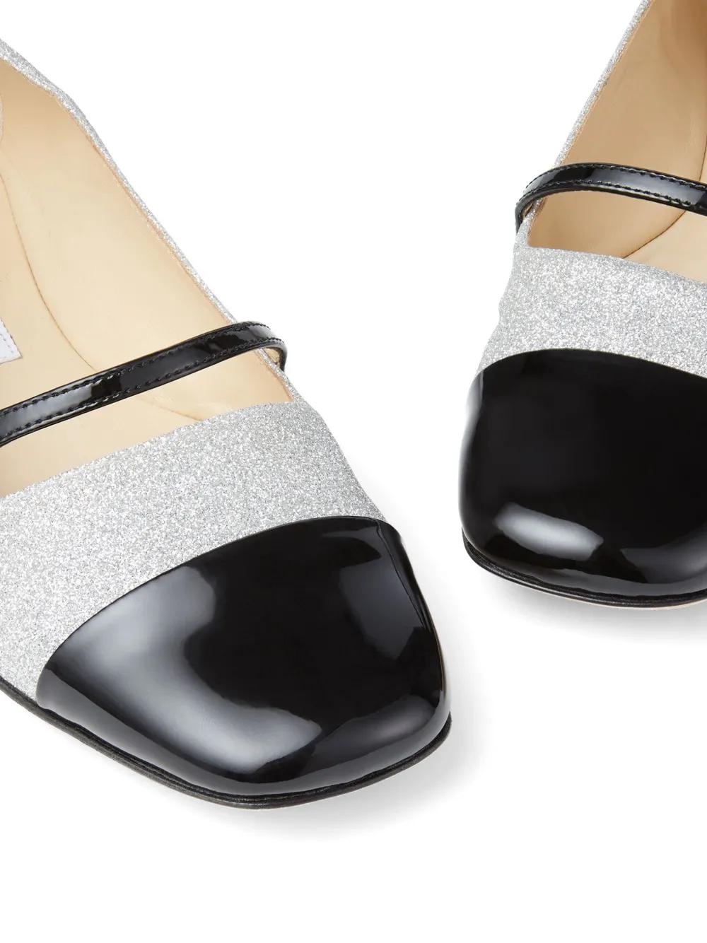 silver-tone/black nappa leather patent finish glitter detailing contrasting toecap round toe slip-on style branded insole flat rubber sole