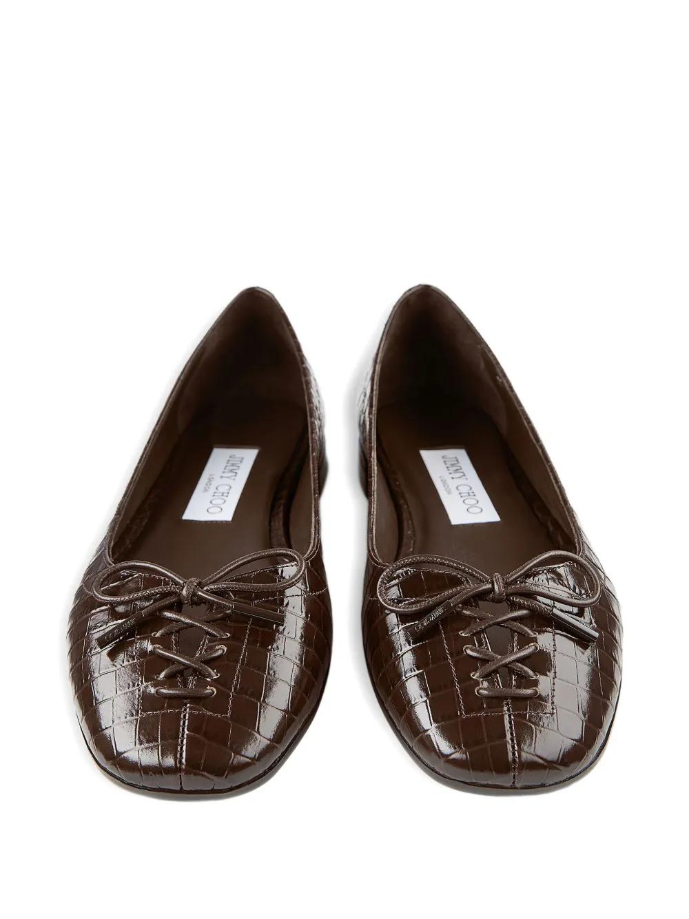 brown crocodile-effect leather lace-up detail round toe flat sole leather laces Wardrobe Icon