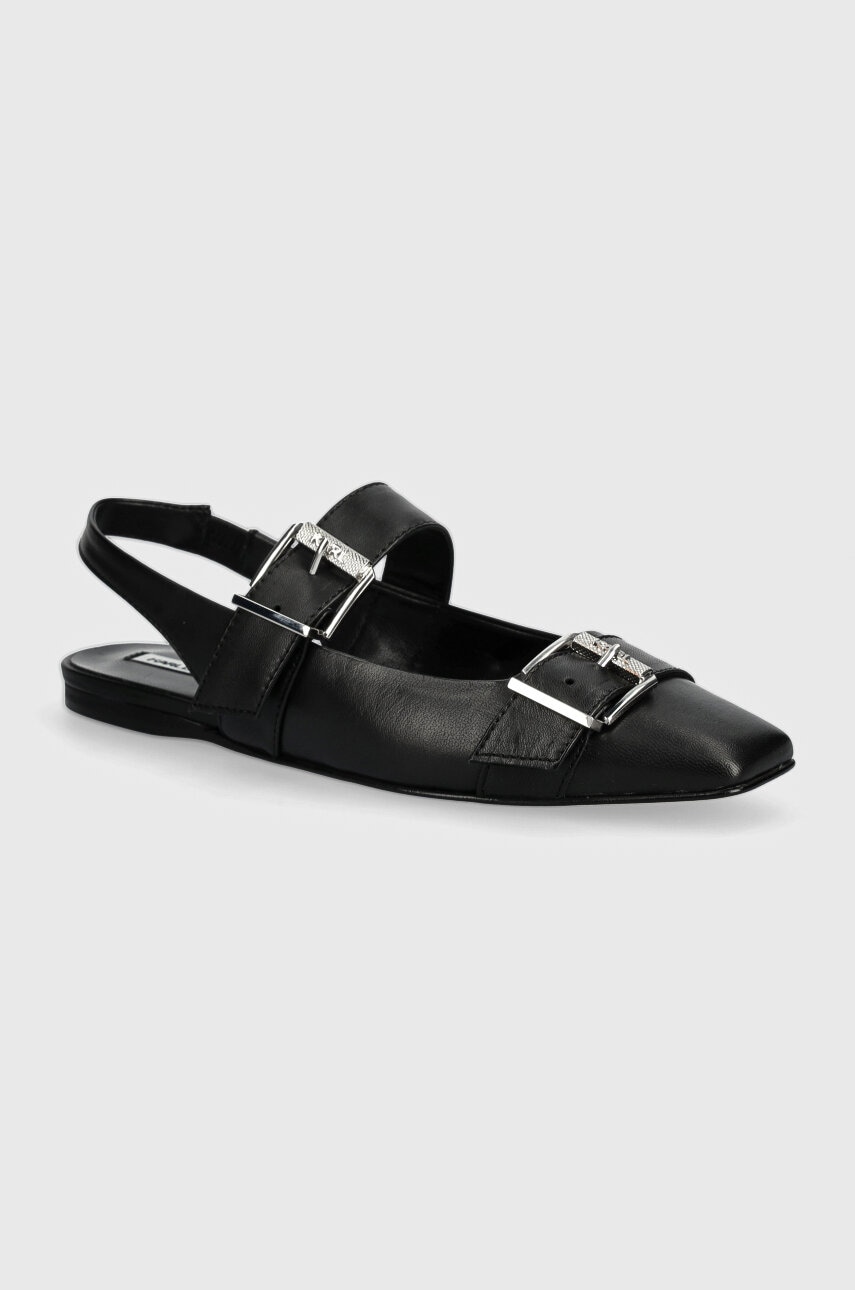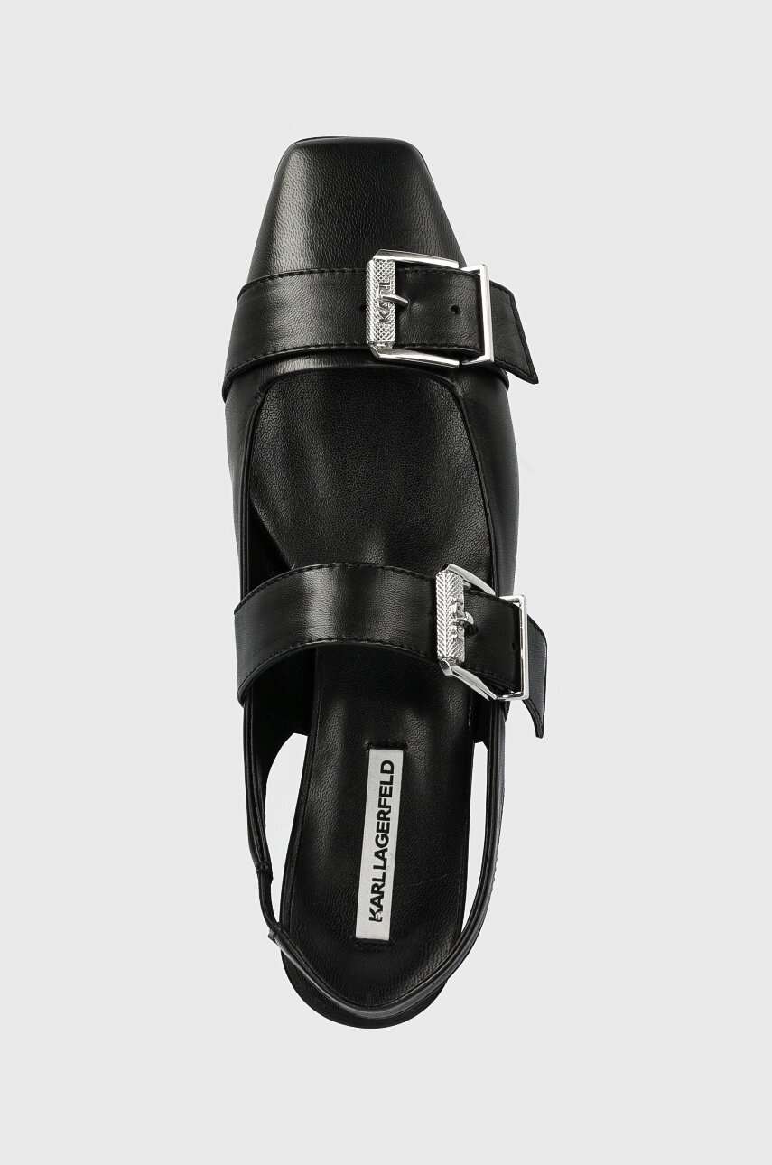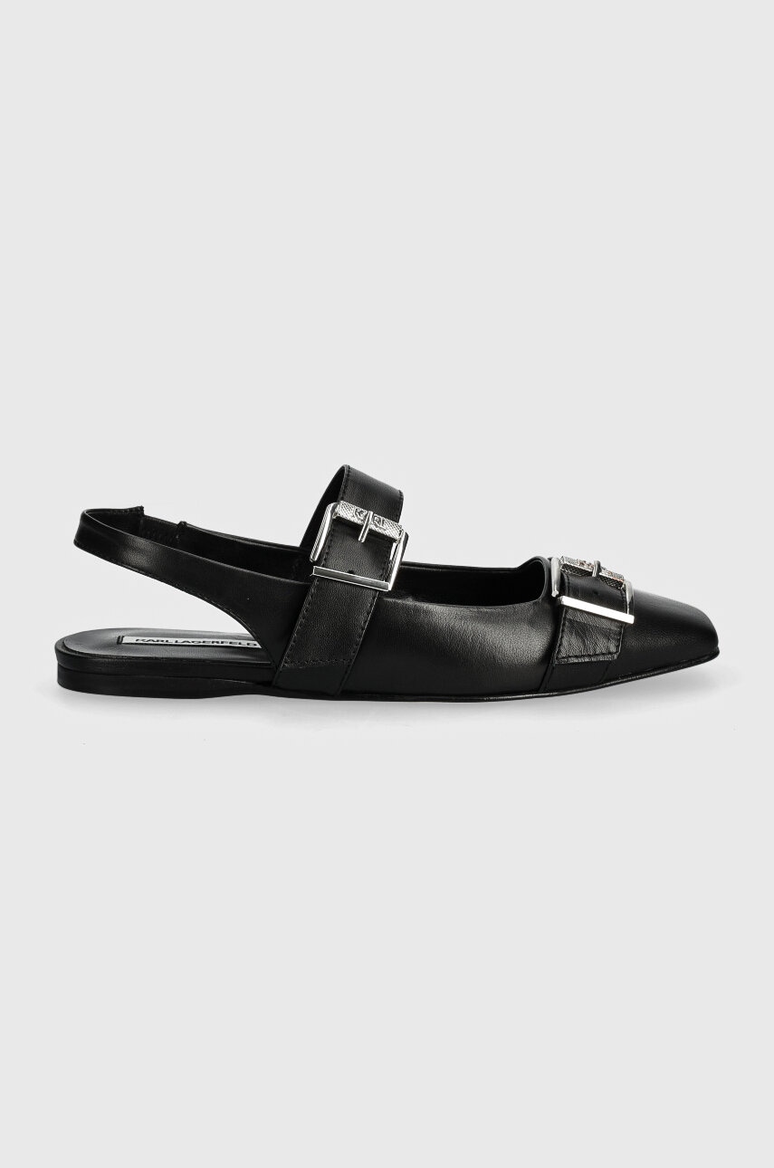 Karl Lagerfeld baleriny skórzane KONNIE kolor czarny z odkrytą piętą KL40186