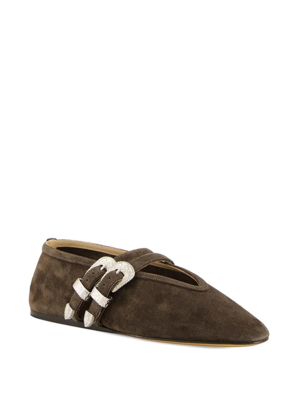 Le Monde Beryl double-buckle suede ballet flats - Brown