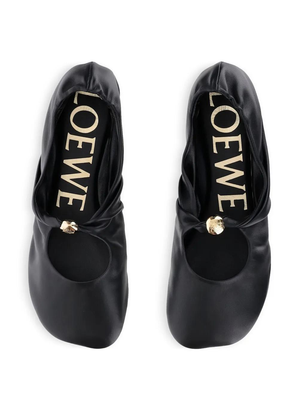 black leather gathered detailing gold-tone buckle round toe flat sole