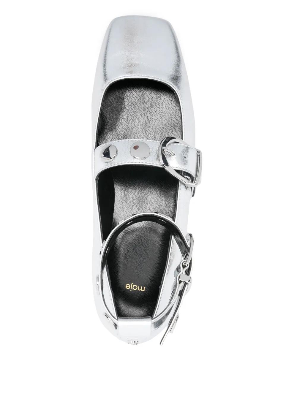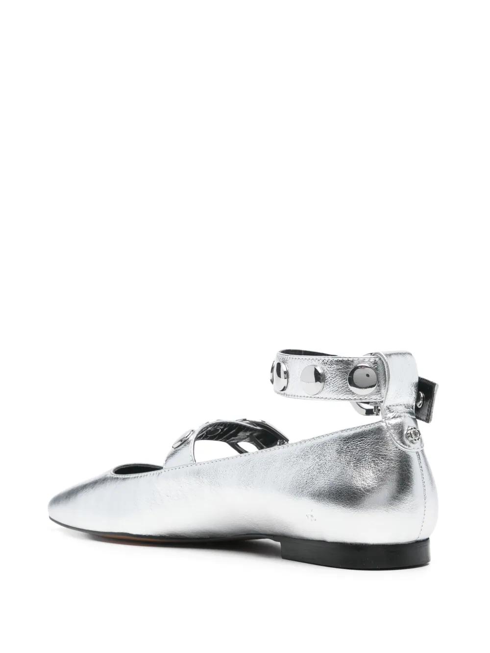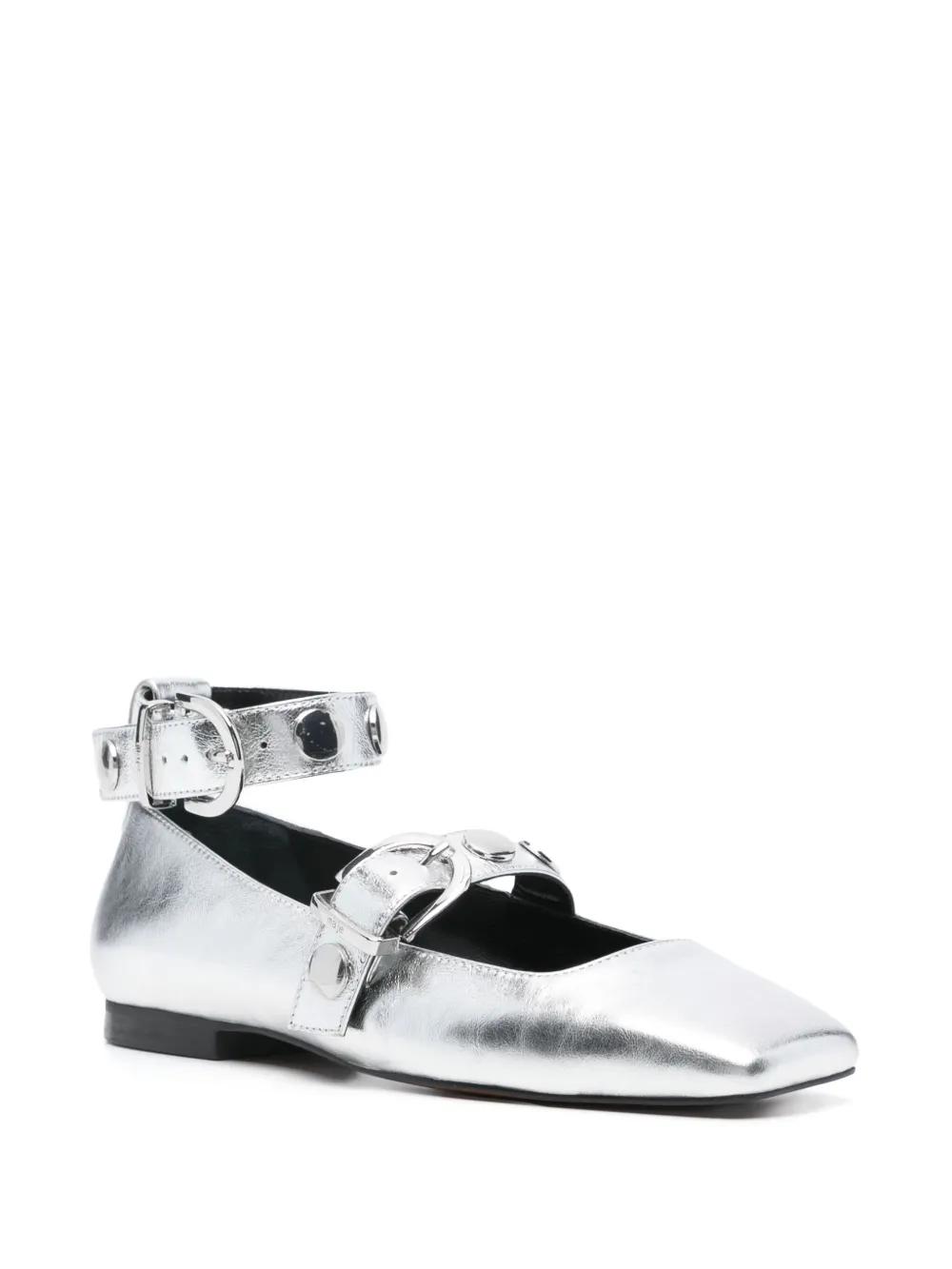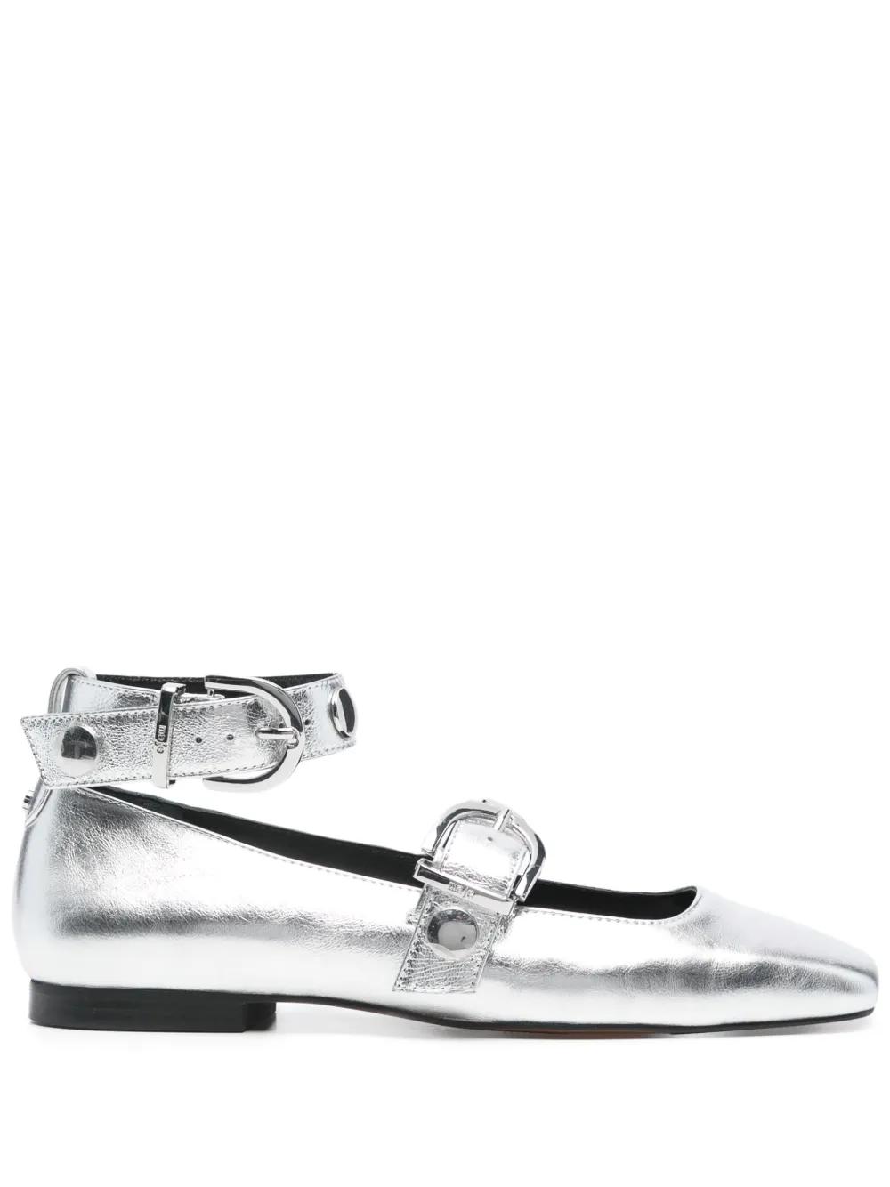 silver-tone double buckle fastening branded leather insole flat leather sole square toe