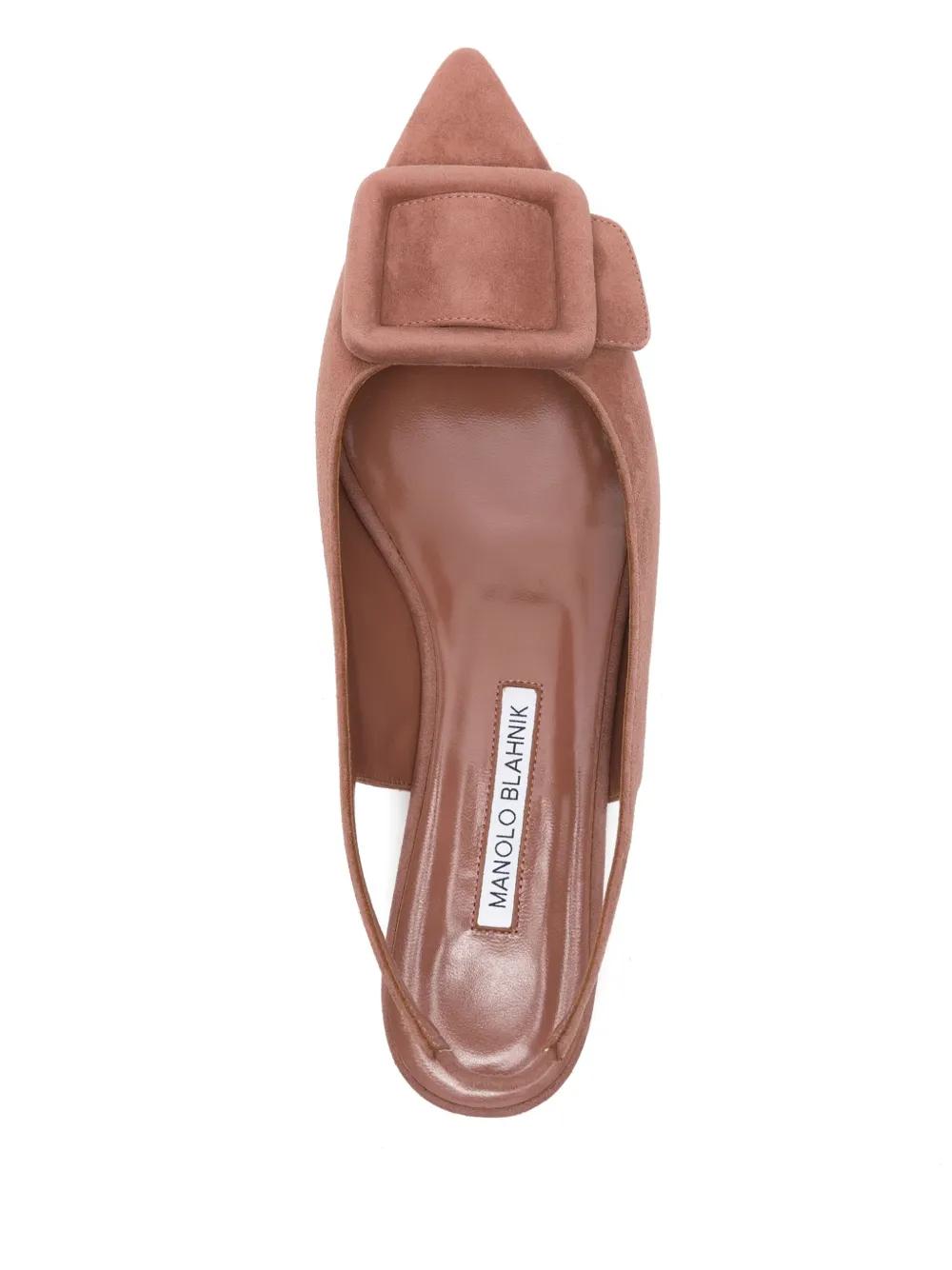 powder pink elasticated slingback strap pointed toe flat sole decorative buckle detail