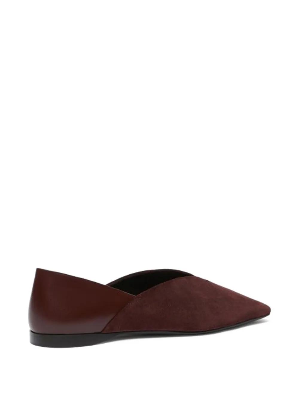 burgundy suede upper v-shaped vamp flat sole pointed toe