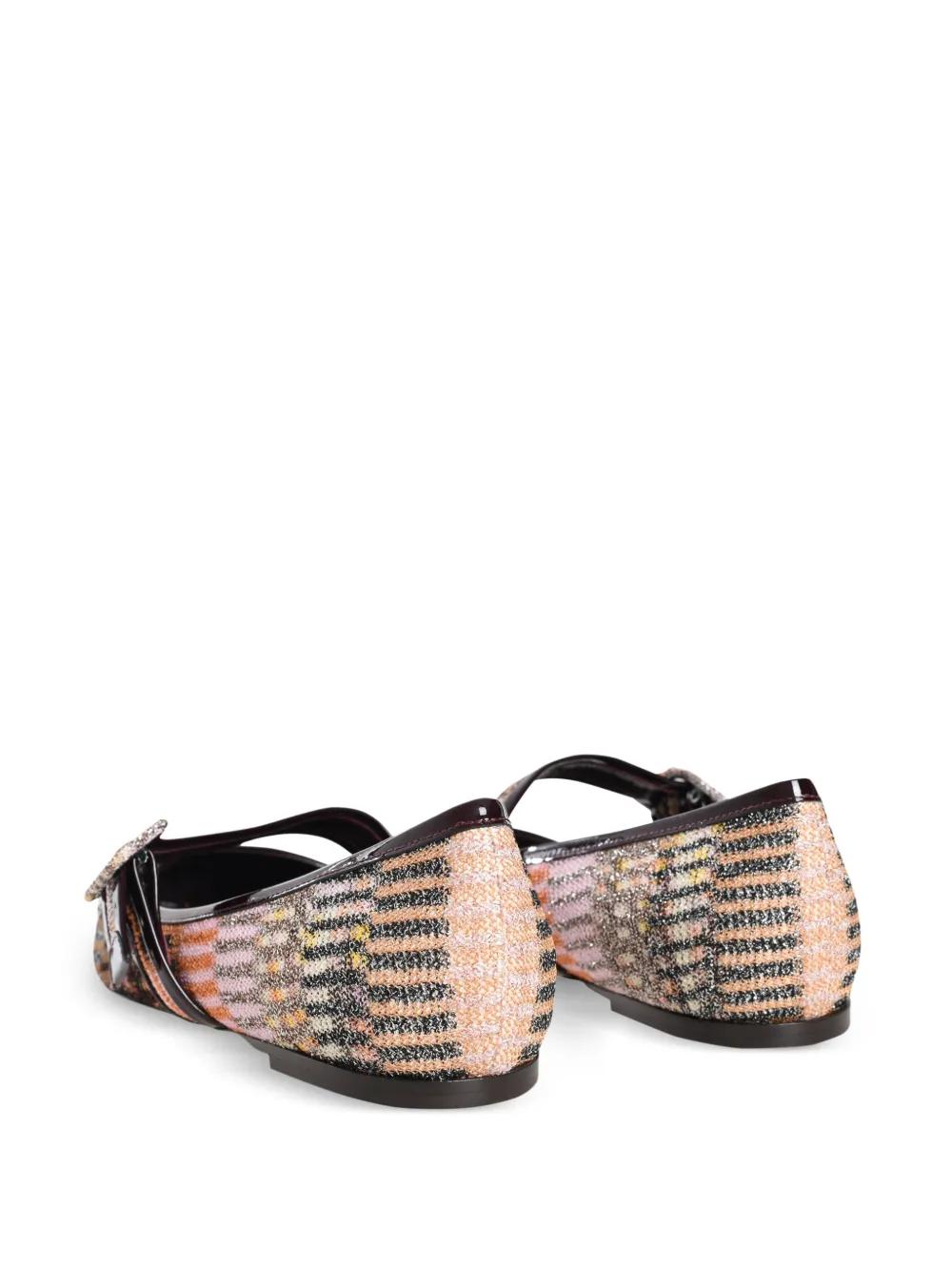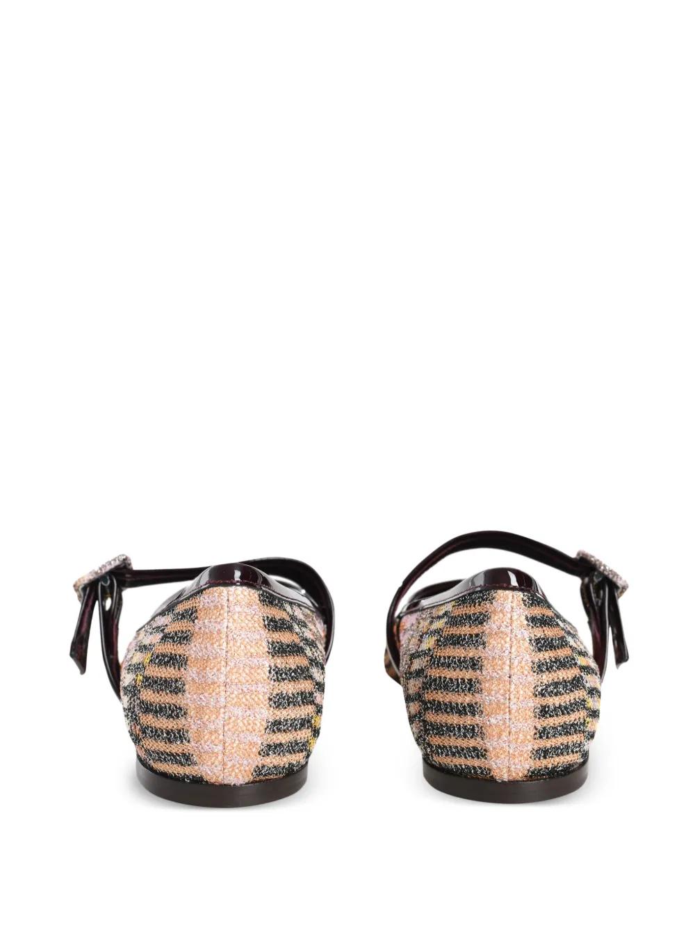 brown leather pixelated print lurex detailing buckle-fastening ankle strap flat sole round toe