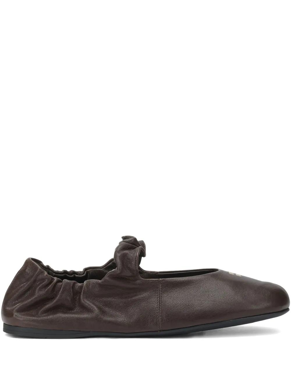 Miu Miu logo-stamp gathered ballet flats - Brown