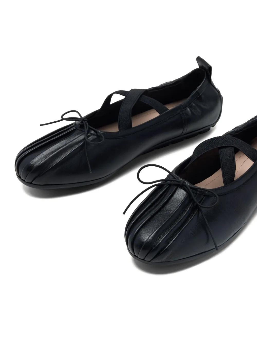black pleated detailing elasticated cross-straps almond toe ridged sole