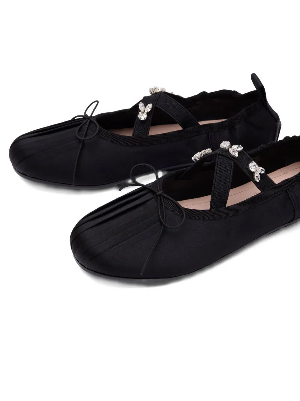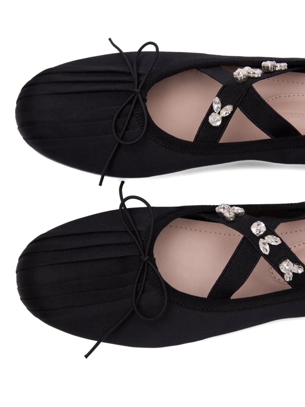 Simone Rocha pleated crystal-embellished ballet flats - Black