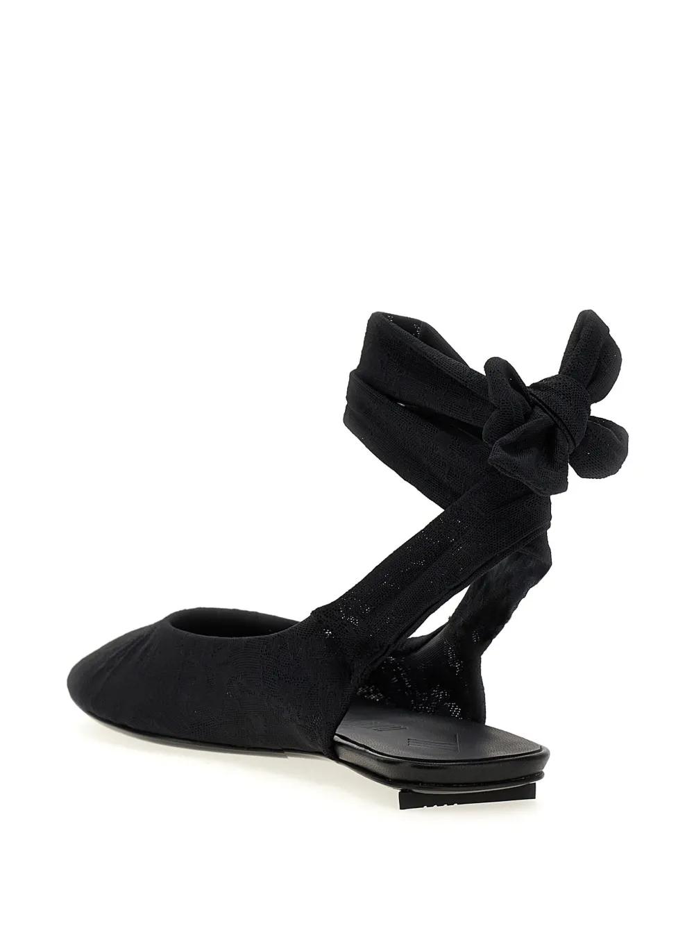 black tie-fastening ankle strap pattern-lace detailing almond toe flat sole