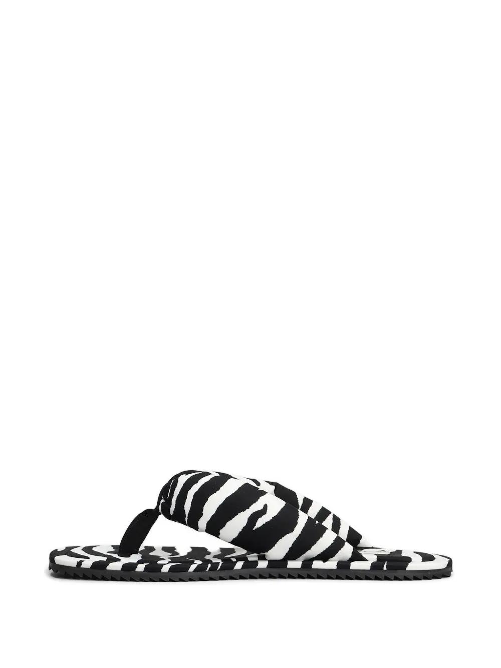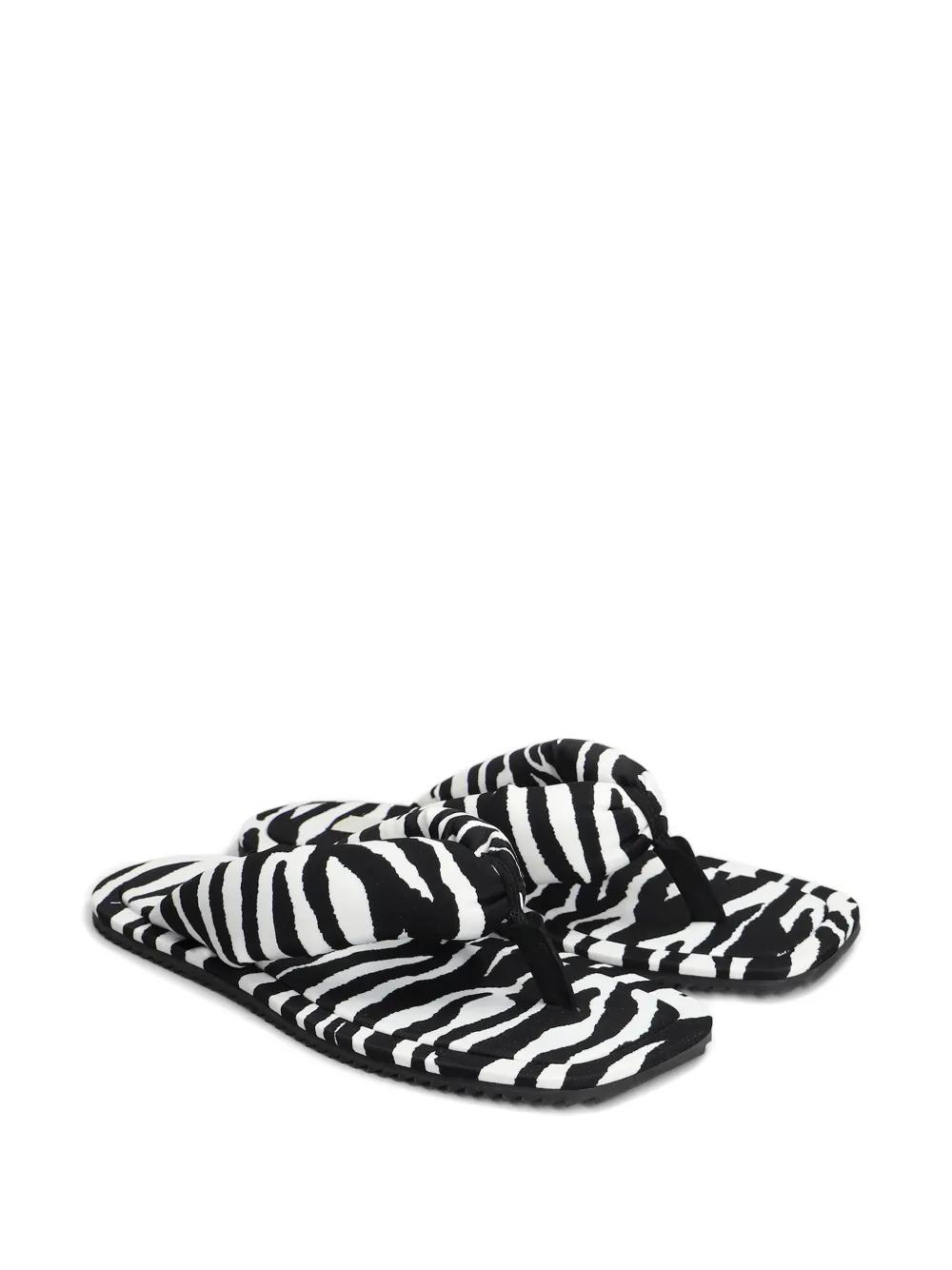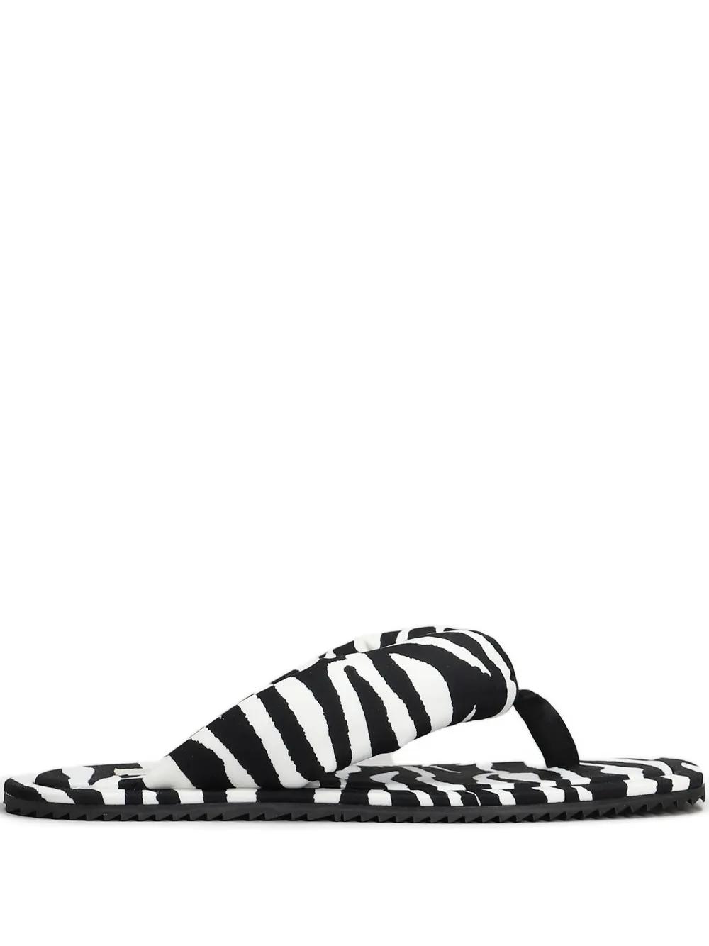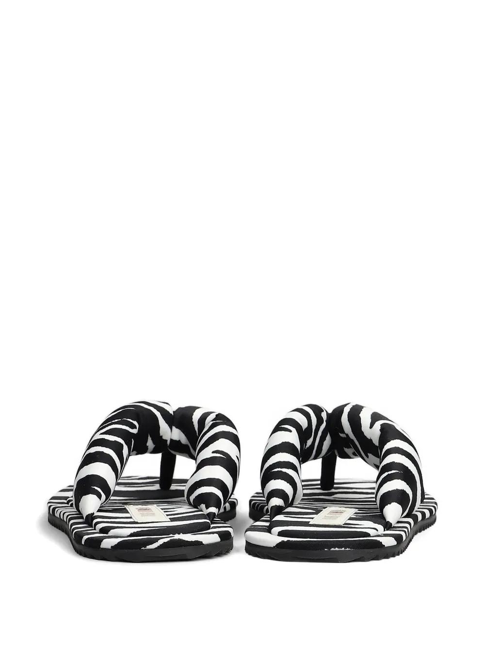 black and white zebra pattern cushioned footbed thong strap design rubber sole