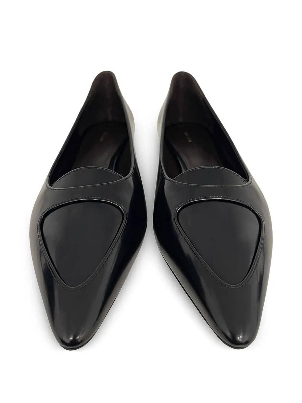 black pleated detailing elasticated cross-straps almond toe ridged sole