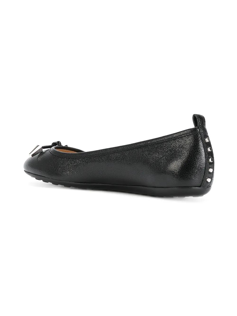 Transcend the season in style with these ballerina shoes from Tod’s. Classically designed and flawlessly constructed in the label's Italian atelier, this refreshingly simple pair is rendered in black leather and boasts a chic round toe with a delicate bow detail and silver-tone accents for a subtle feminine touch. Slim and stylish with just the right amount of details, they're finished with a discrete pull tab at the rear, a leather lining, a brand embossed insole and a rubber sole dotted with the house’s signature pebbles - a homage to the iconic Gommino loafers.