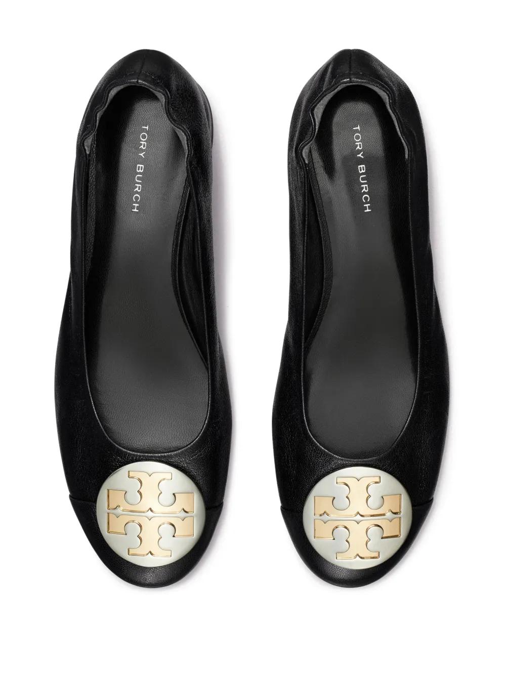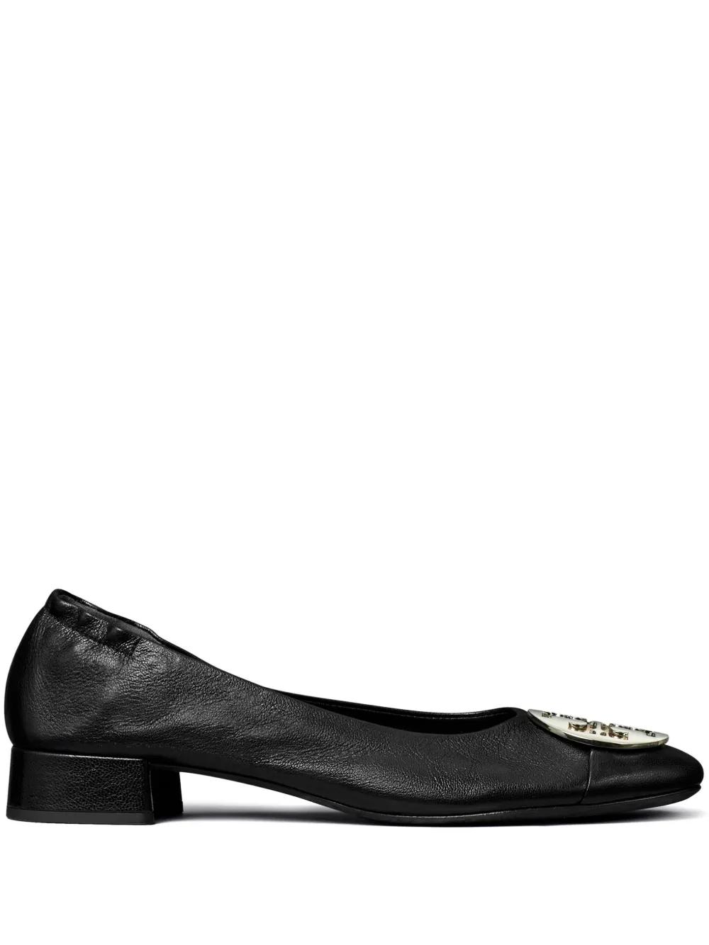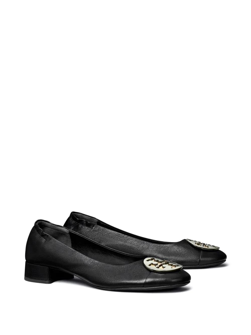 black gold-tone silver-tone nappa leather signature Double T motif round toe slip-on style branded leather insole kitten heel