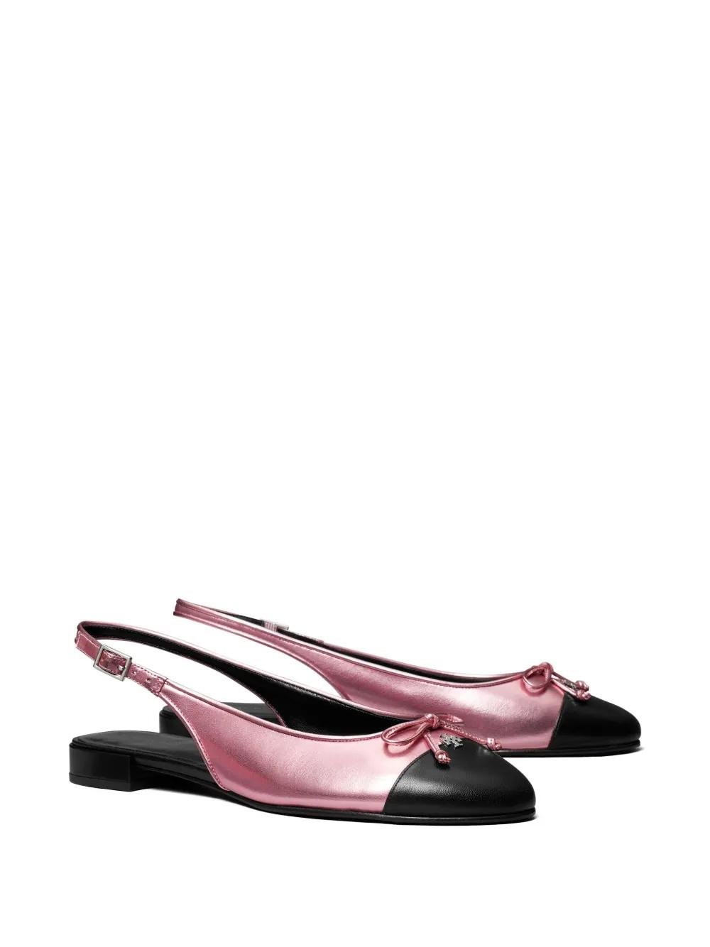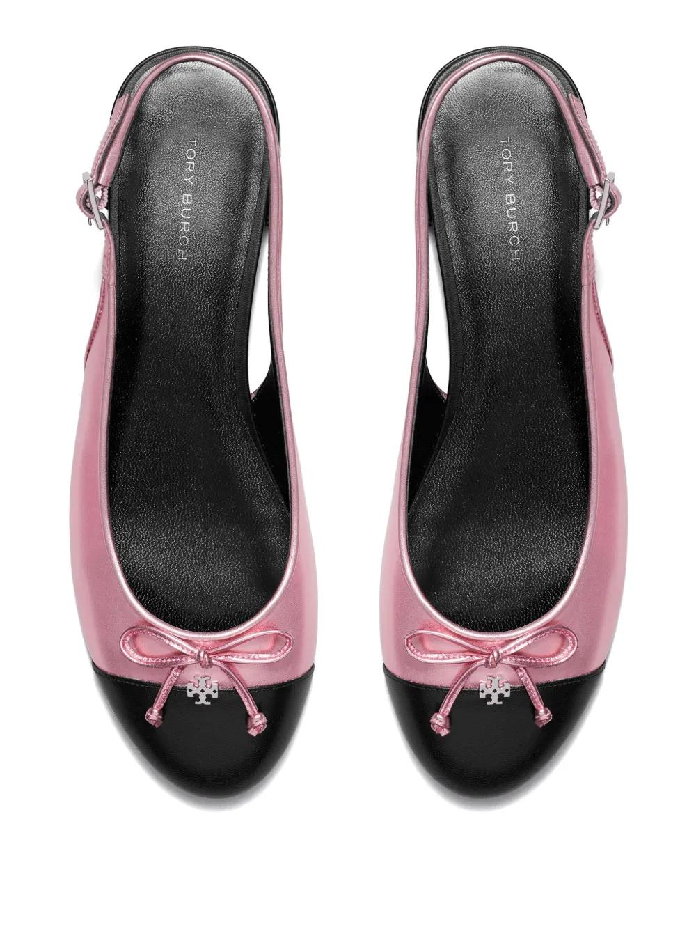 pink buckle-fastening slingback strap branded leather insole leather sole round toe