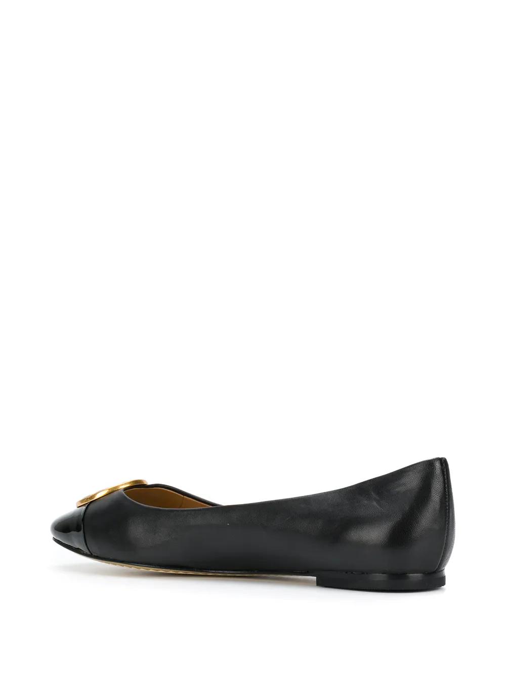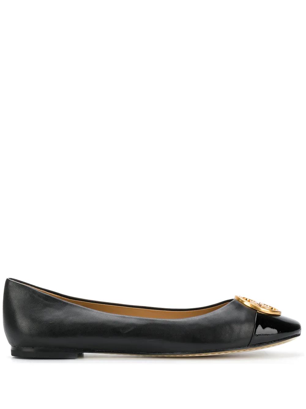 Tory Burch excels in understated chic and succeeds in creating stylish pieces that transcend seasonal trends. These black Chelsea ballet shoes are crafted from leather and feature a round toe, a gold-tone logo plaque, a slip-on style, a branded insole and a flat rubber sole.