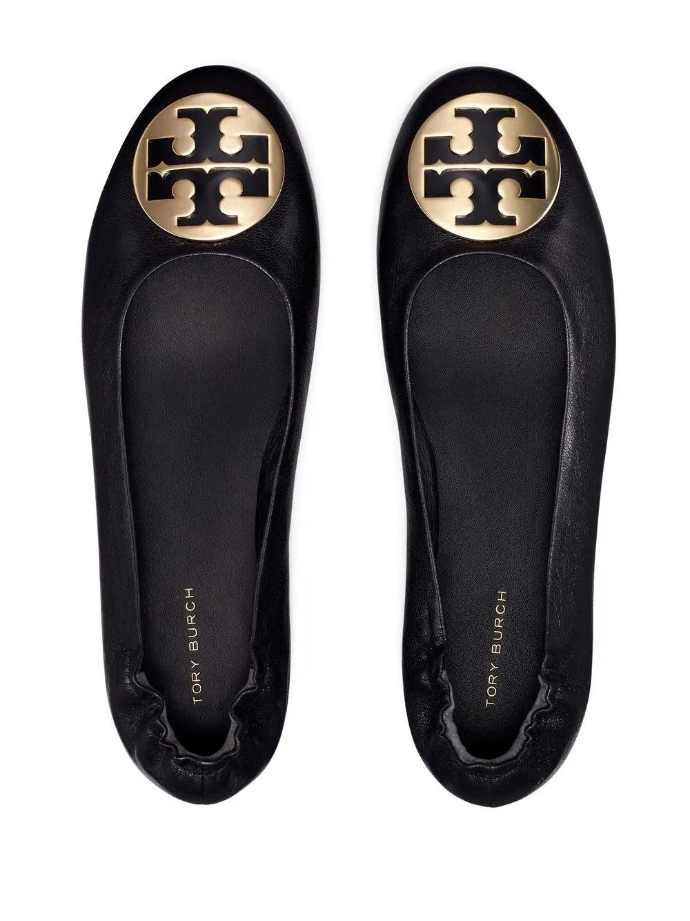 black nappa leather branded leather insole logo plaque almond toe slip-on style flat rubber sole