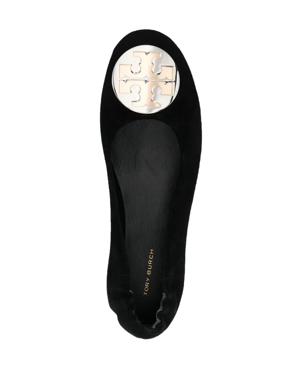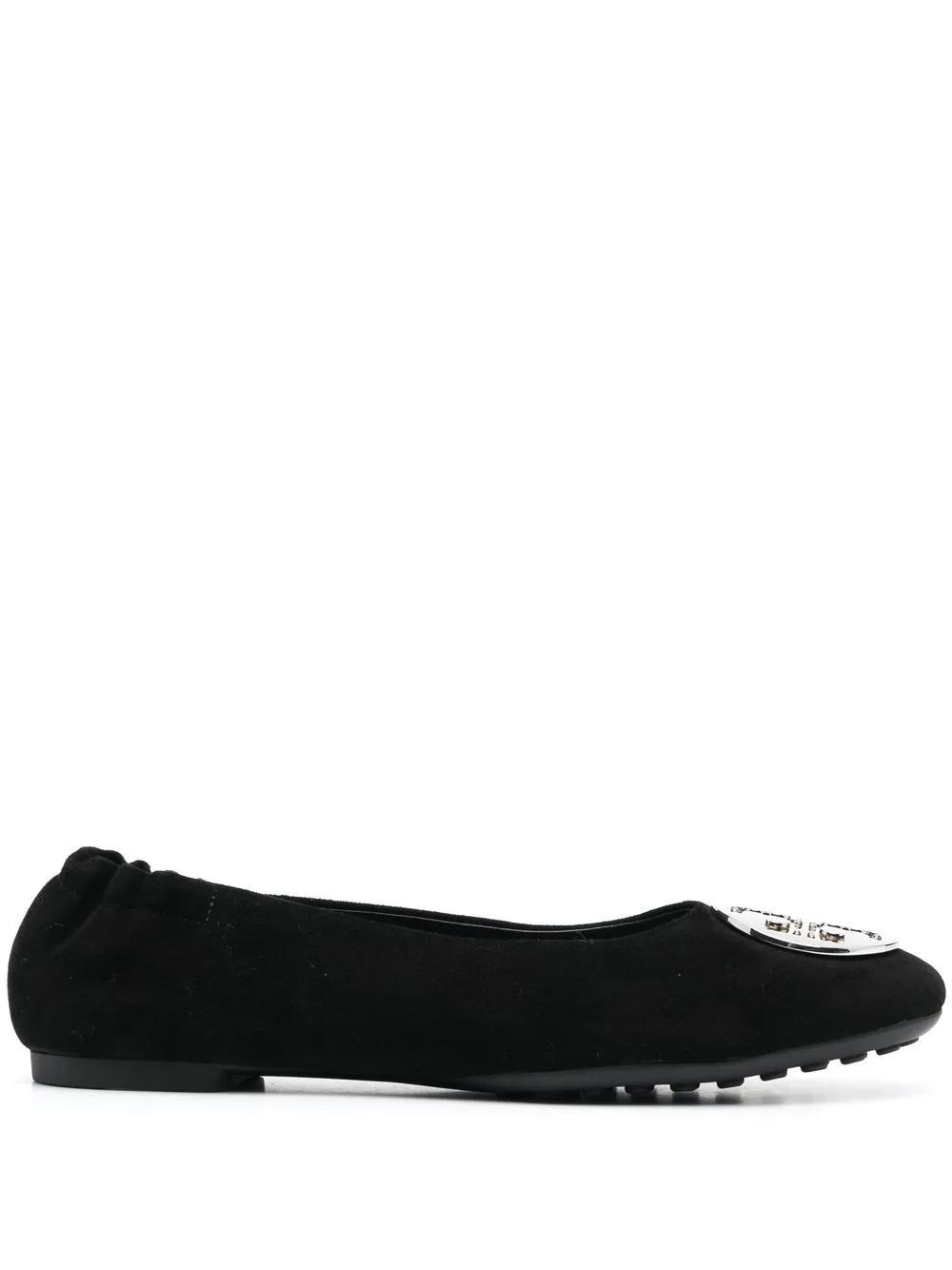 Tory Burch logo-plaque detail ballerina shoes - Black