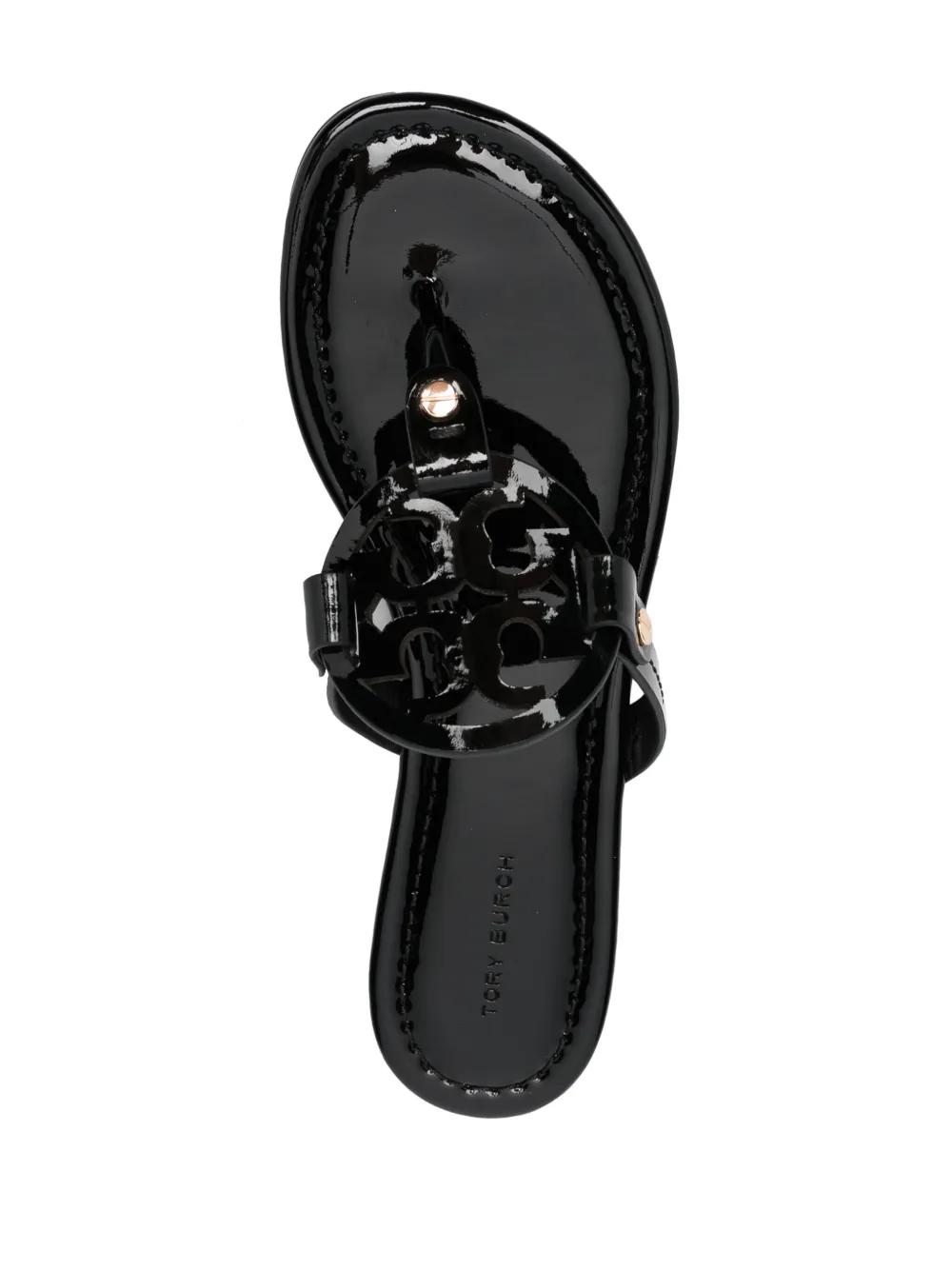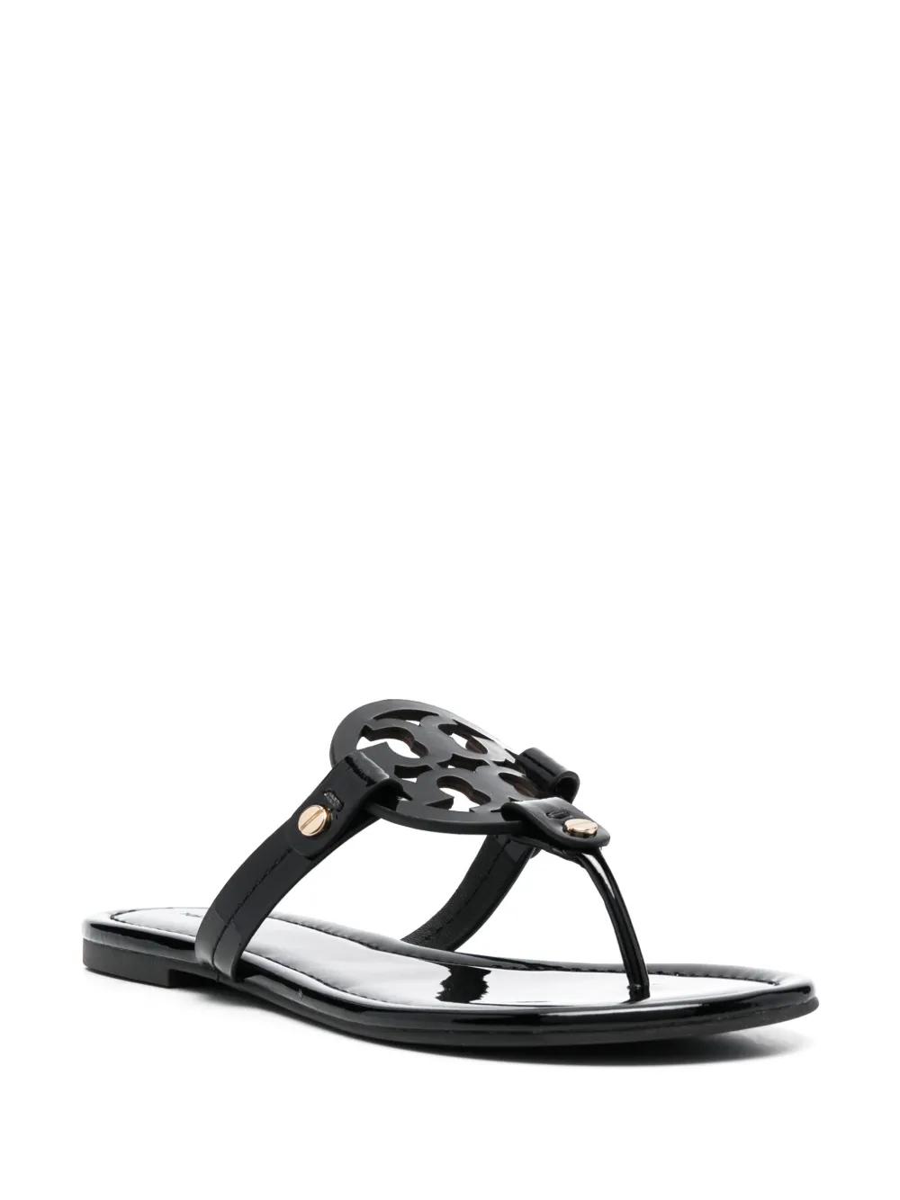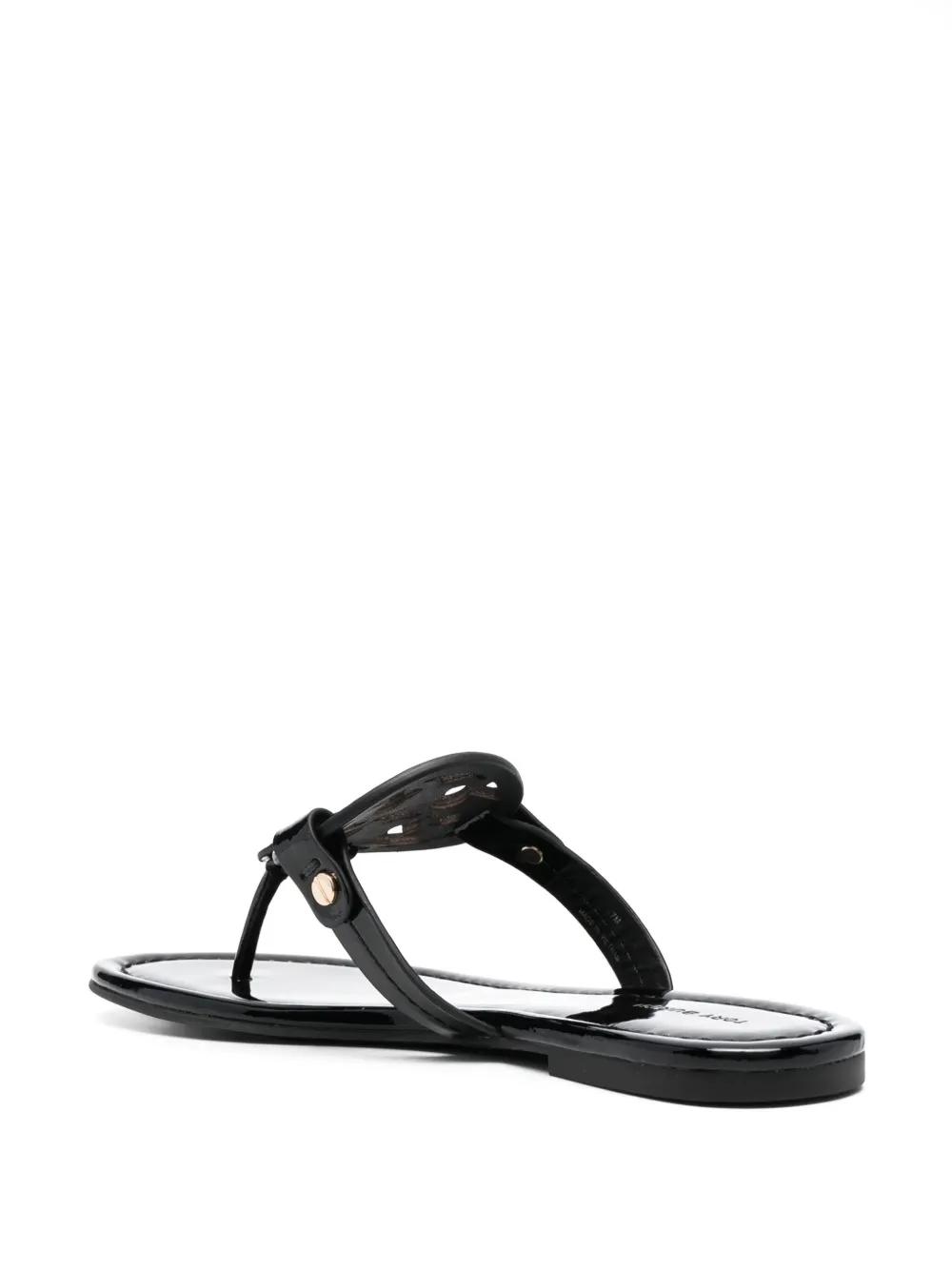 black calf leather cut-out detailing signature Double T motif tonal stitching thong strap slip-on style flat rubber sole