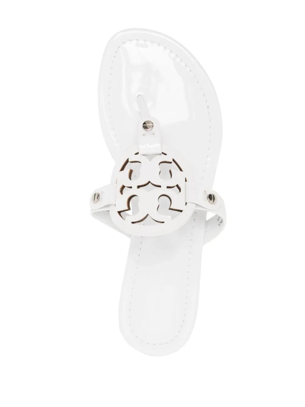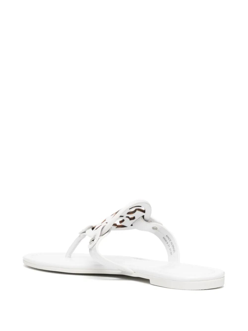 optical white calf leather cut-out detailing signature Double T motif tonal stitching thong strap slip-on style flat rubber sole