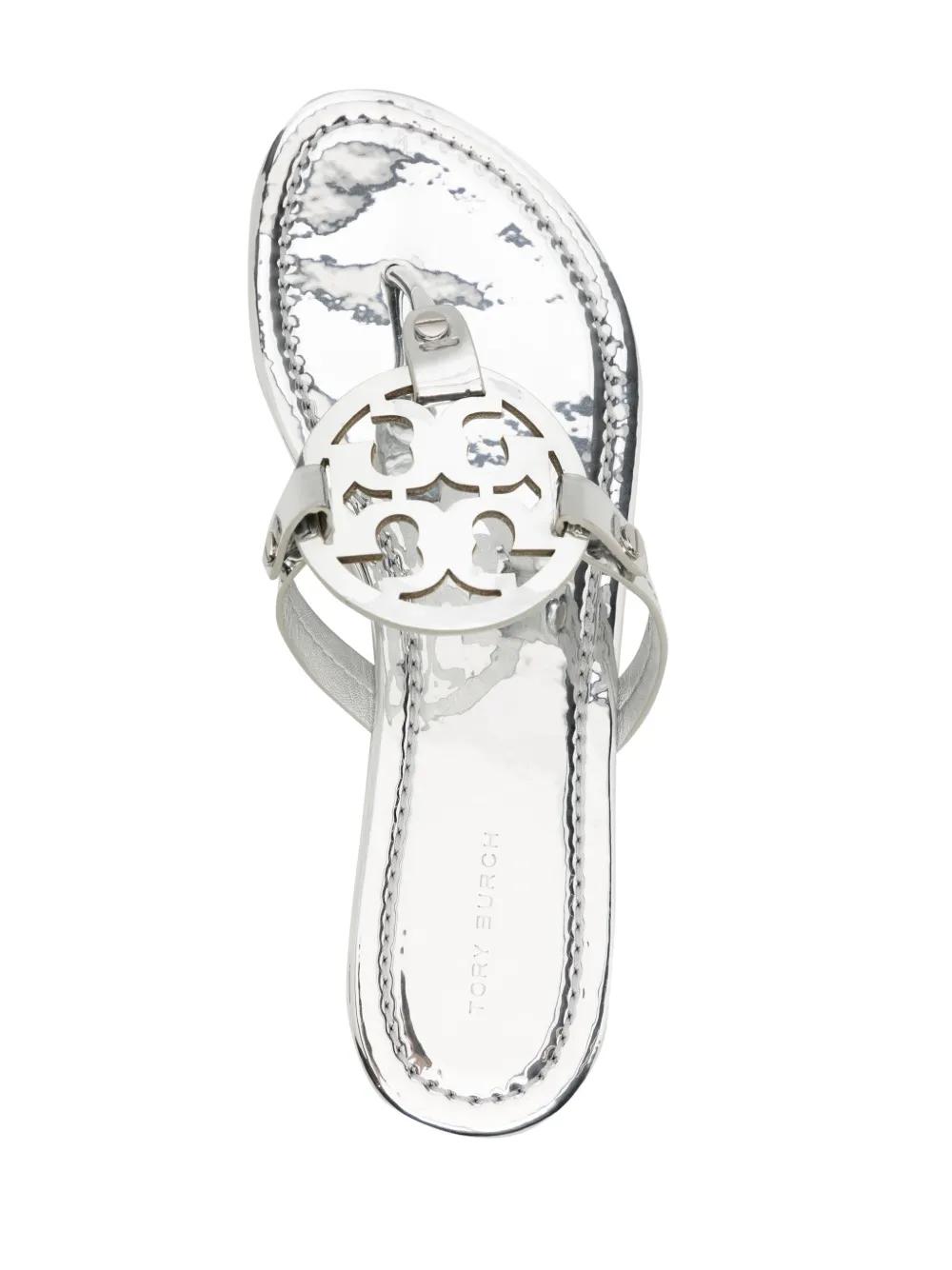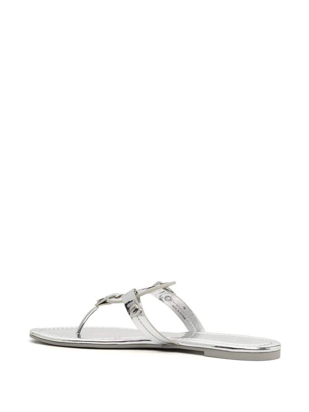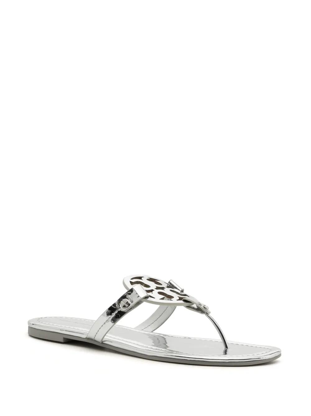 silver-tone metallic effect signature Double T motif cut-out detailing branded footbed thong strap flat rubber sole
