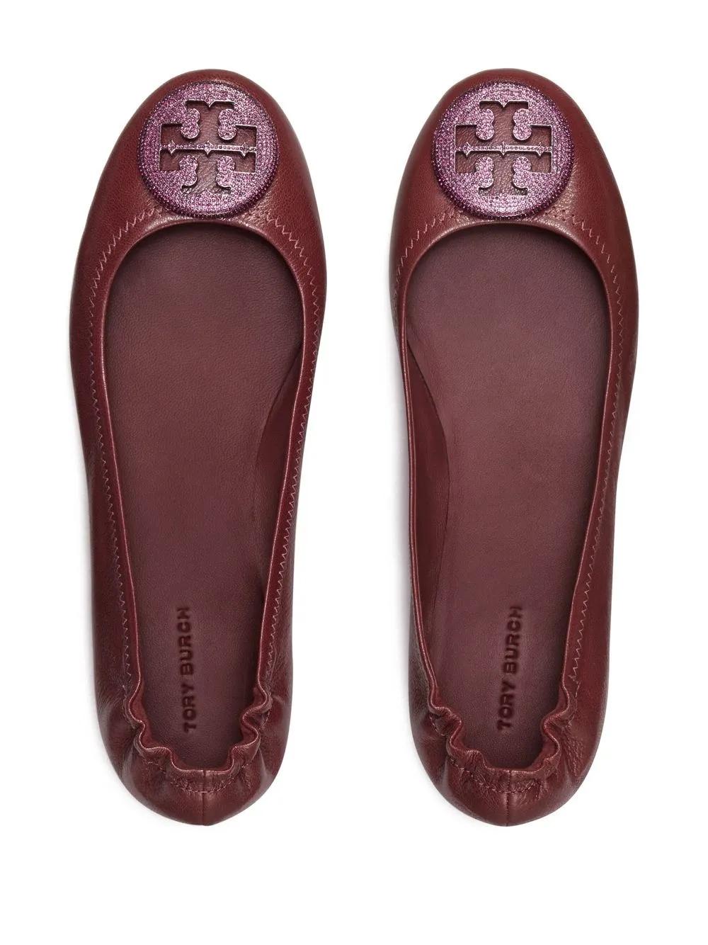claret nappa leather crystal embellishment logo plaque round toe flat rubber sole