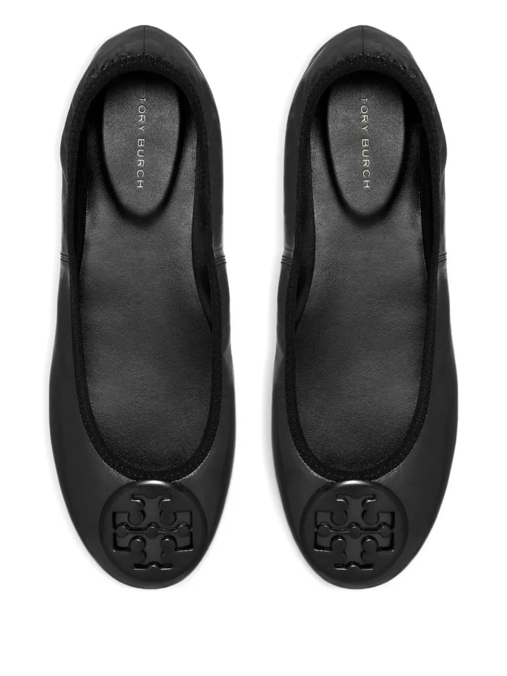 black leather round toe elasticated insert logo-plaque embellishment flat sole
