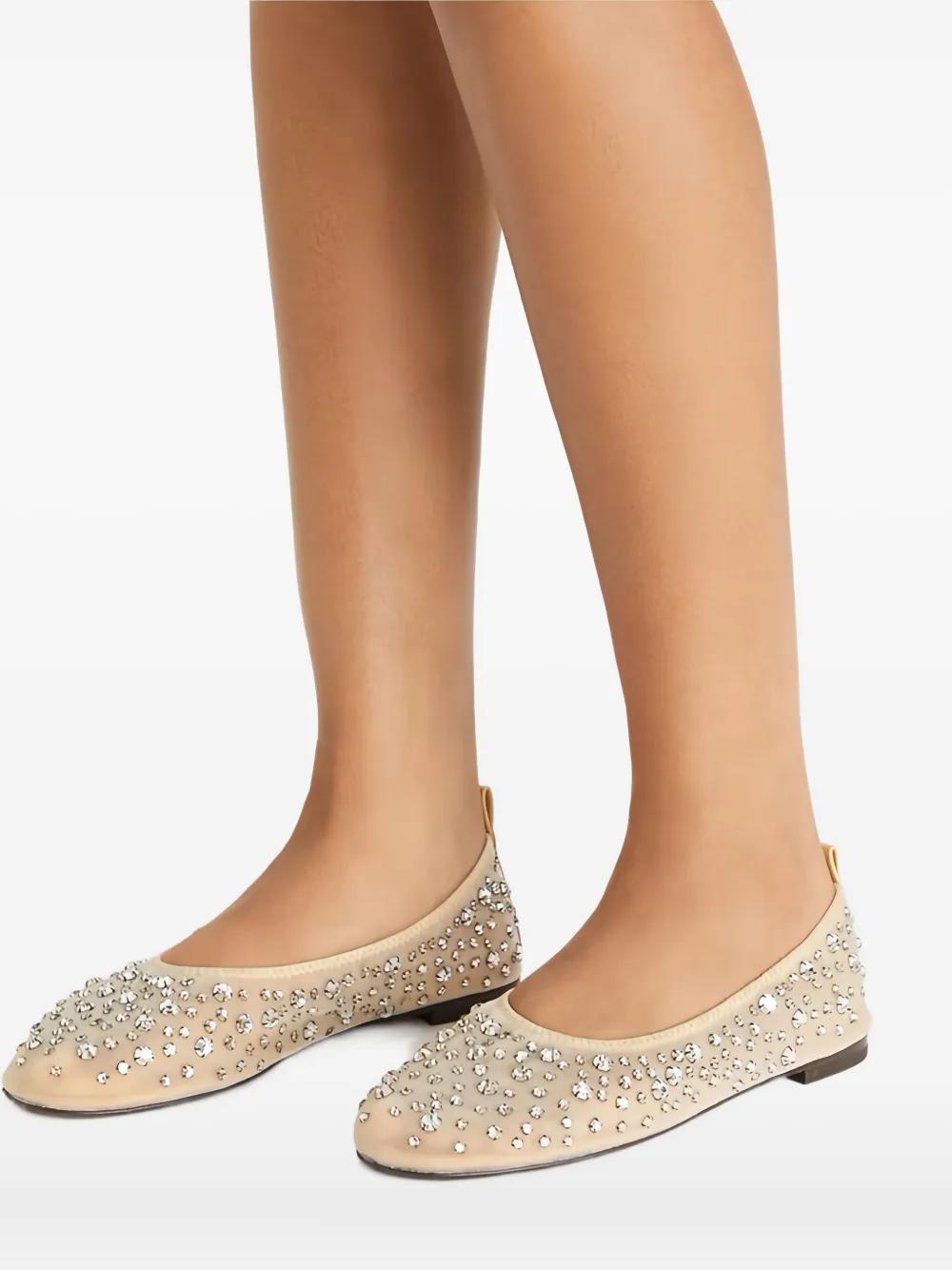 cream rhinestone embellishment pull-tab at the heel flat sole