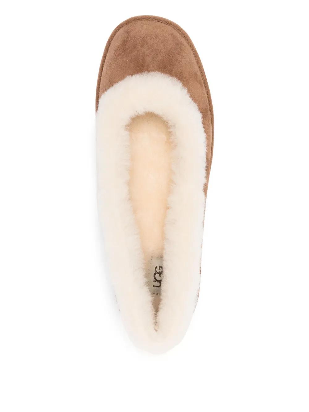chestnut fur trim stitched detail flat sole leather upper leather insole